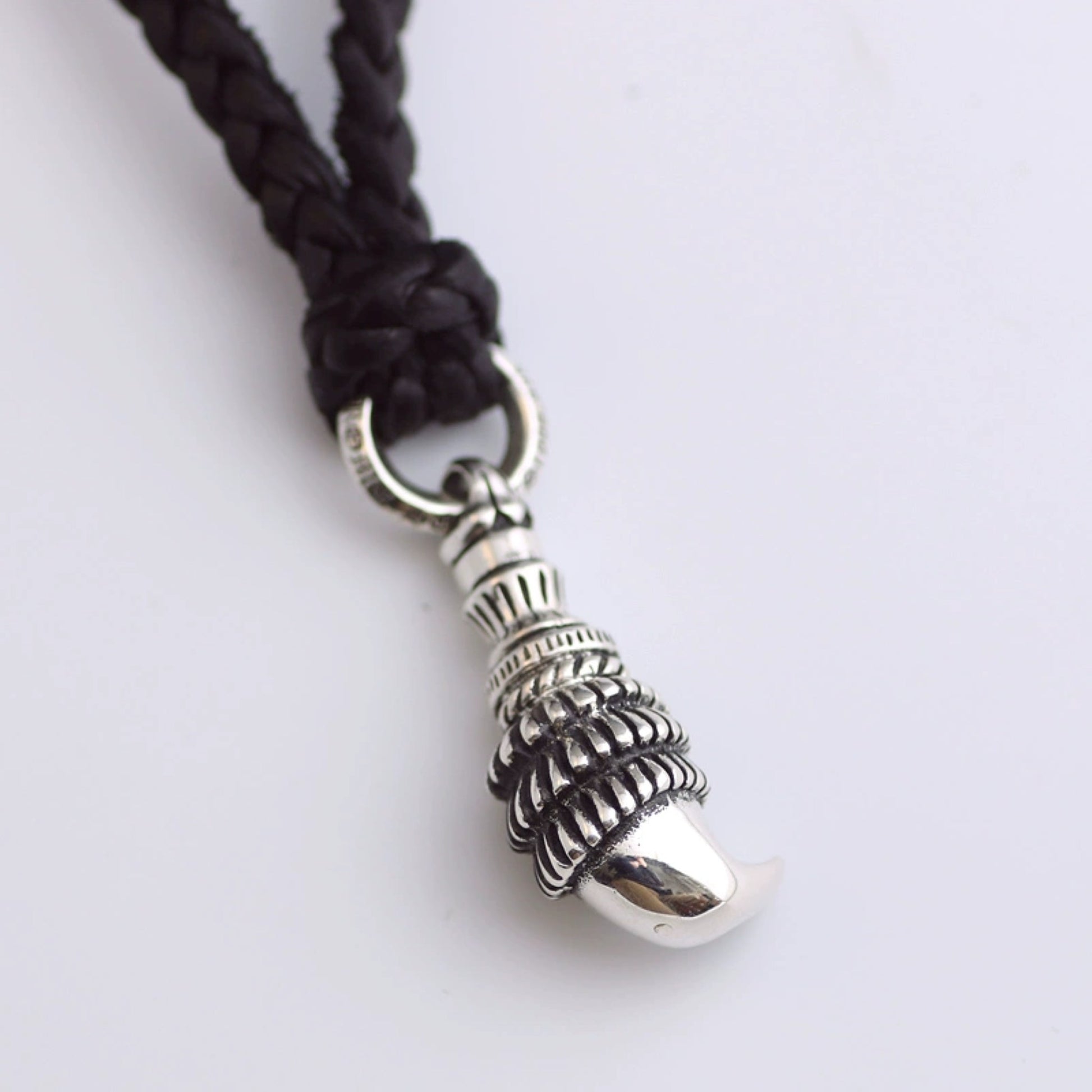 925 Sterling Silver Eagle Claw Pendant, Chrome Hearts Punk Statement Leather Necklace