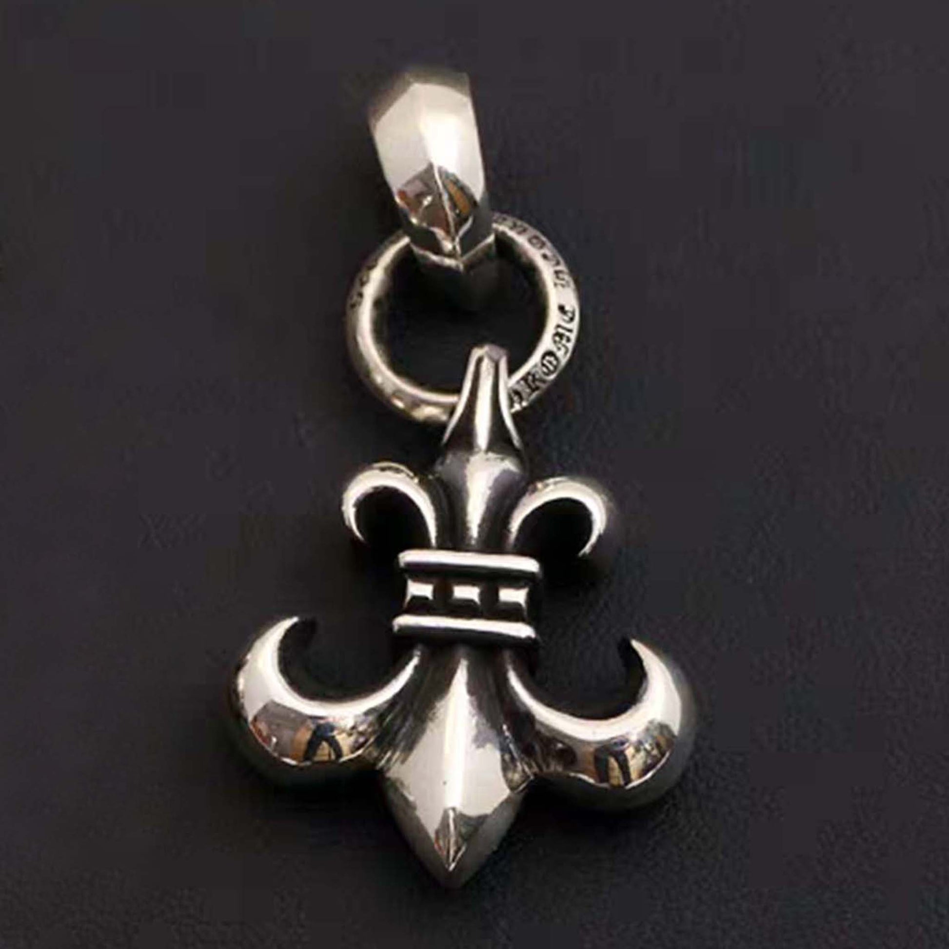 Sterling Silber Halskette Anhänger, Gothic Scout Blume Silber Anhänger, Punk Fleur De Lis Charme