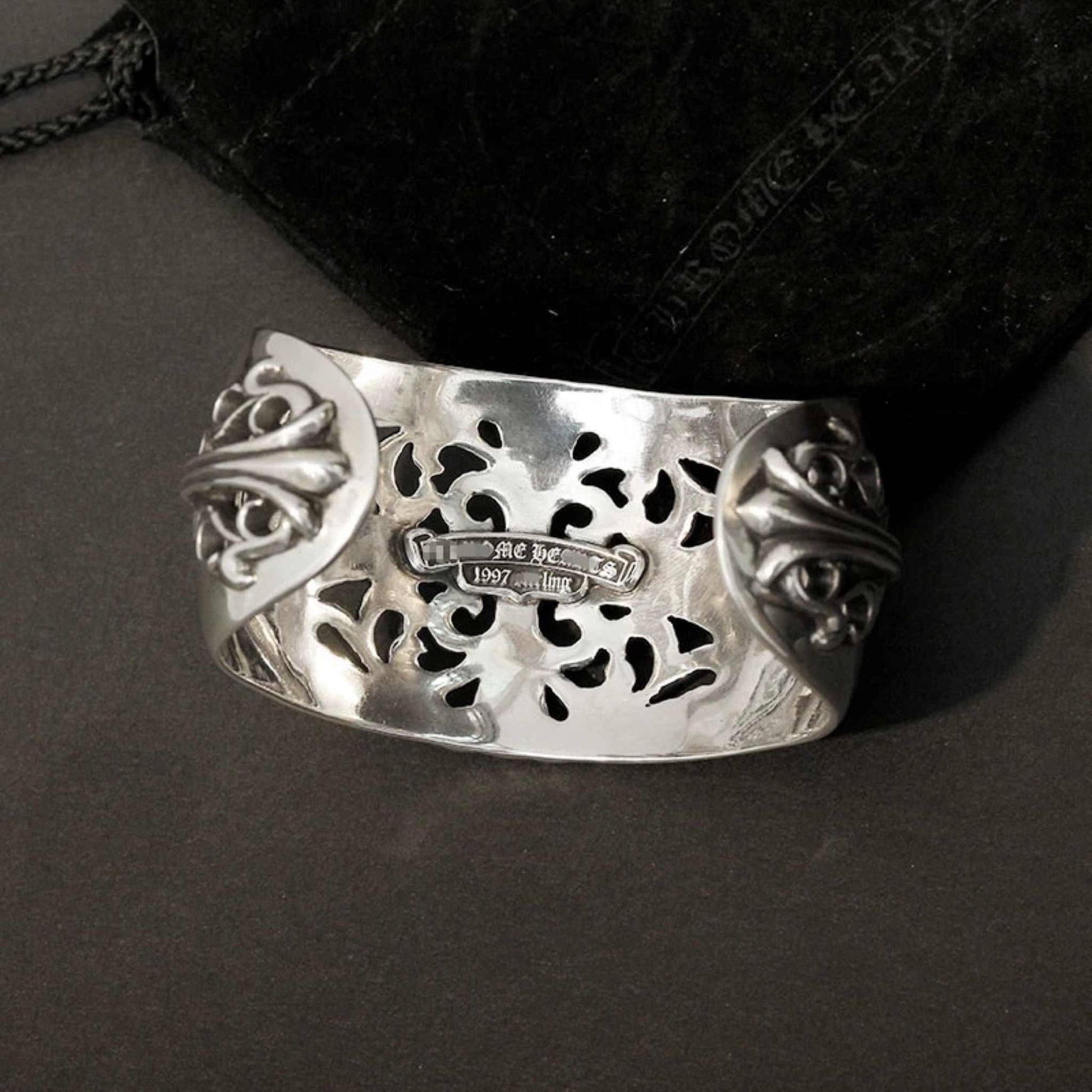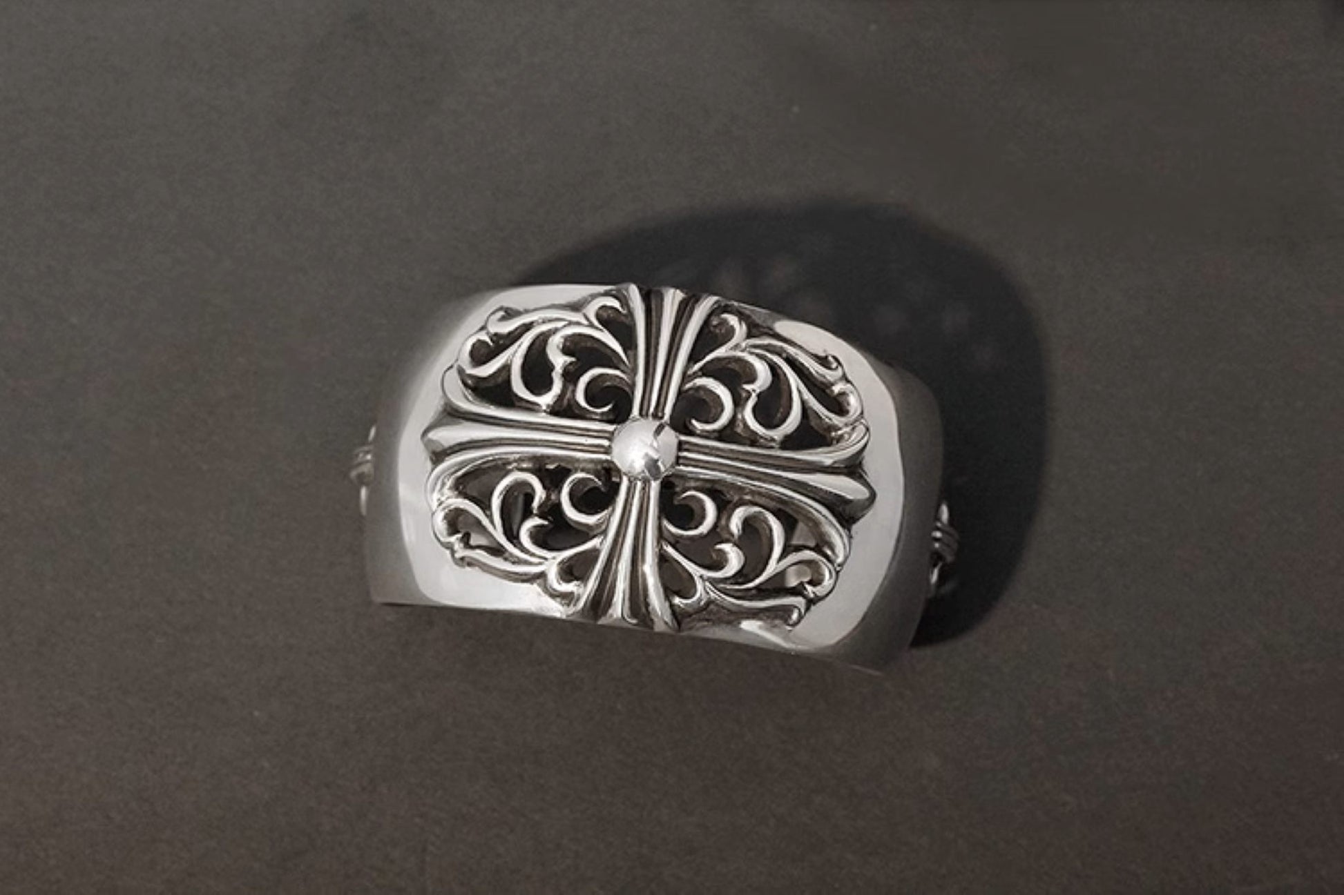 925 Silver Gothic Cross Chunky Open Bracelet, Chrome Hearts Domineering Punk Statement Bangle