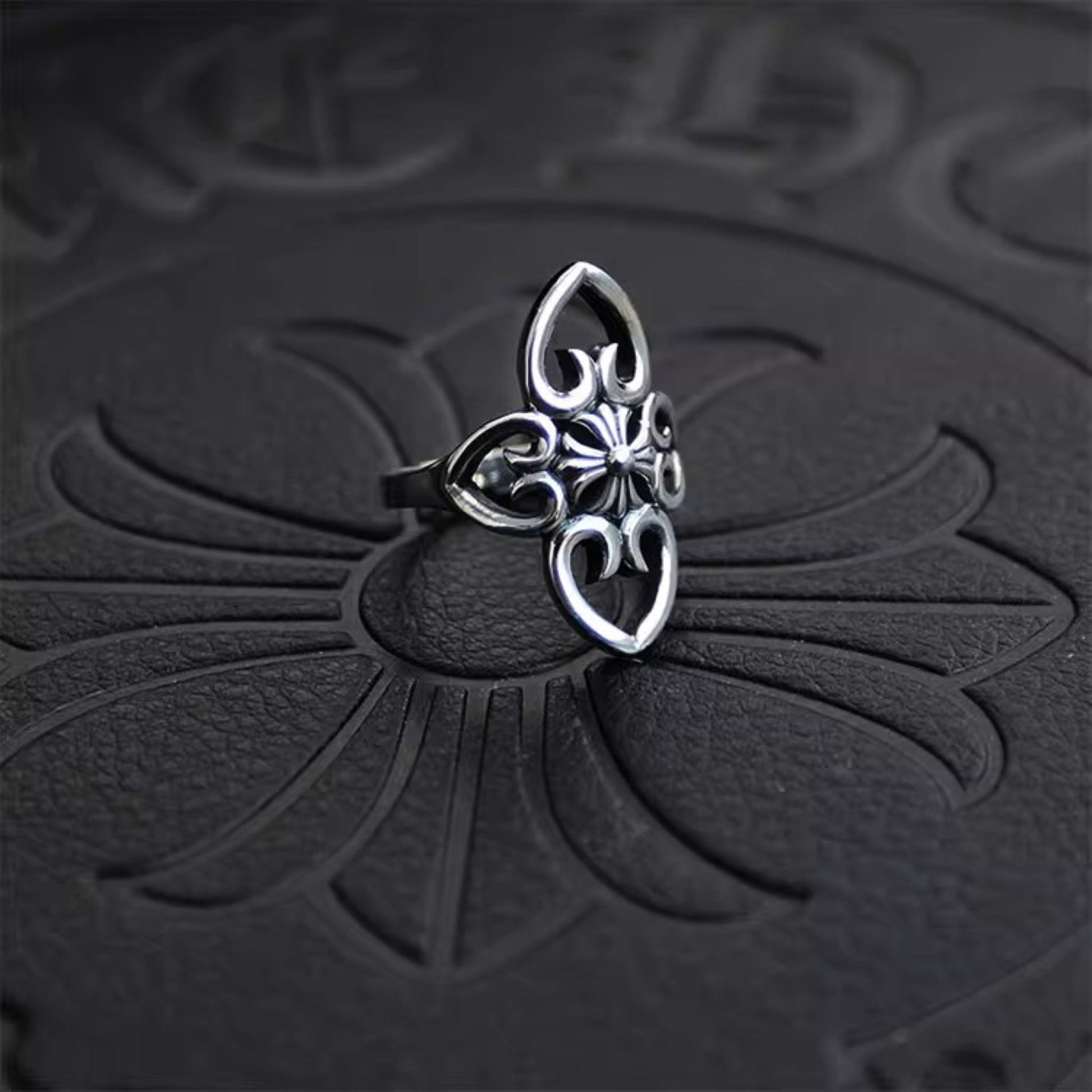 925 Silver Hollow Cross Flower Shape Ring, Chrome Hearts Punk Statement Ring for Couples
