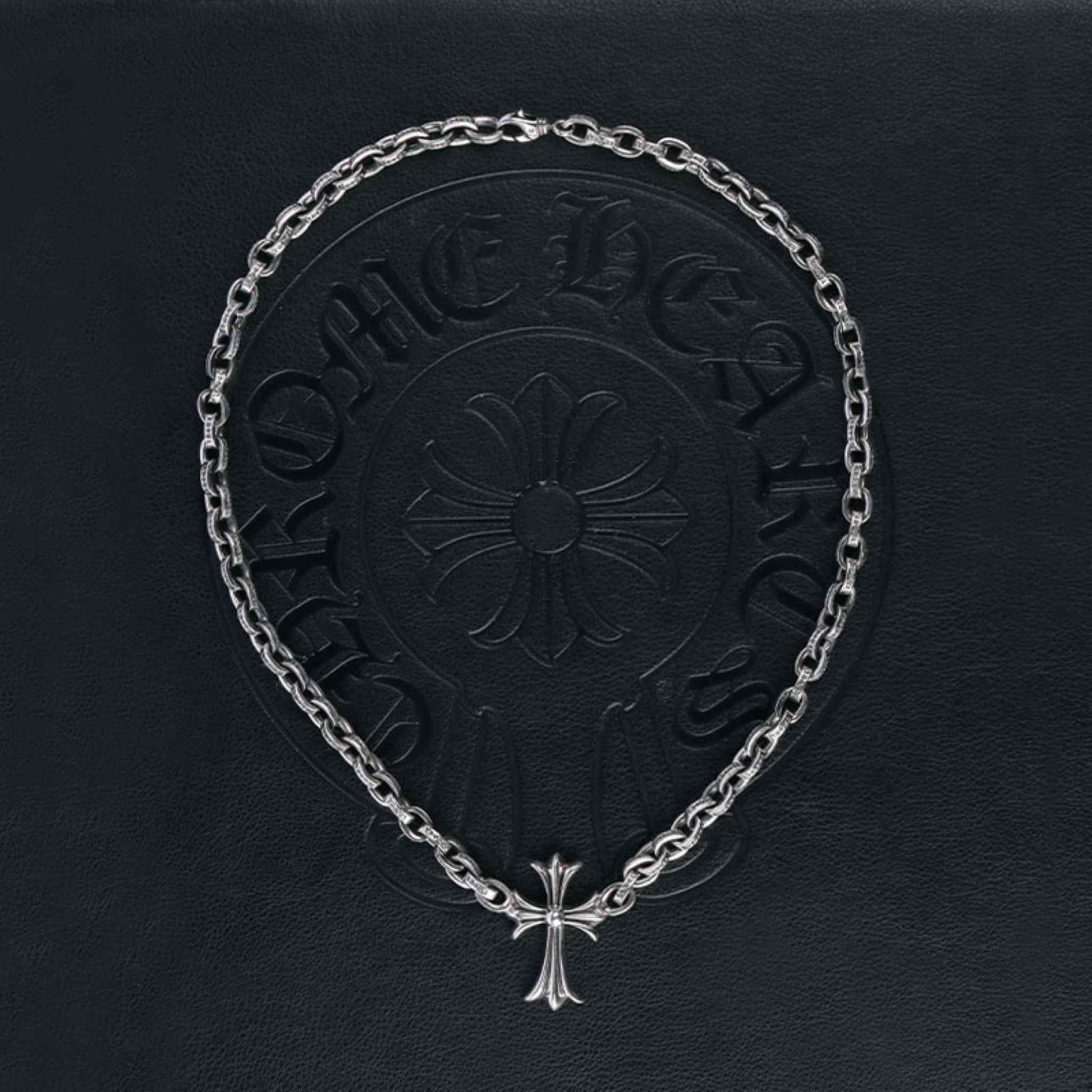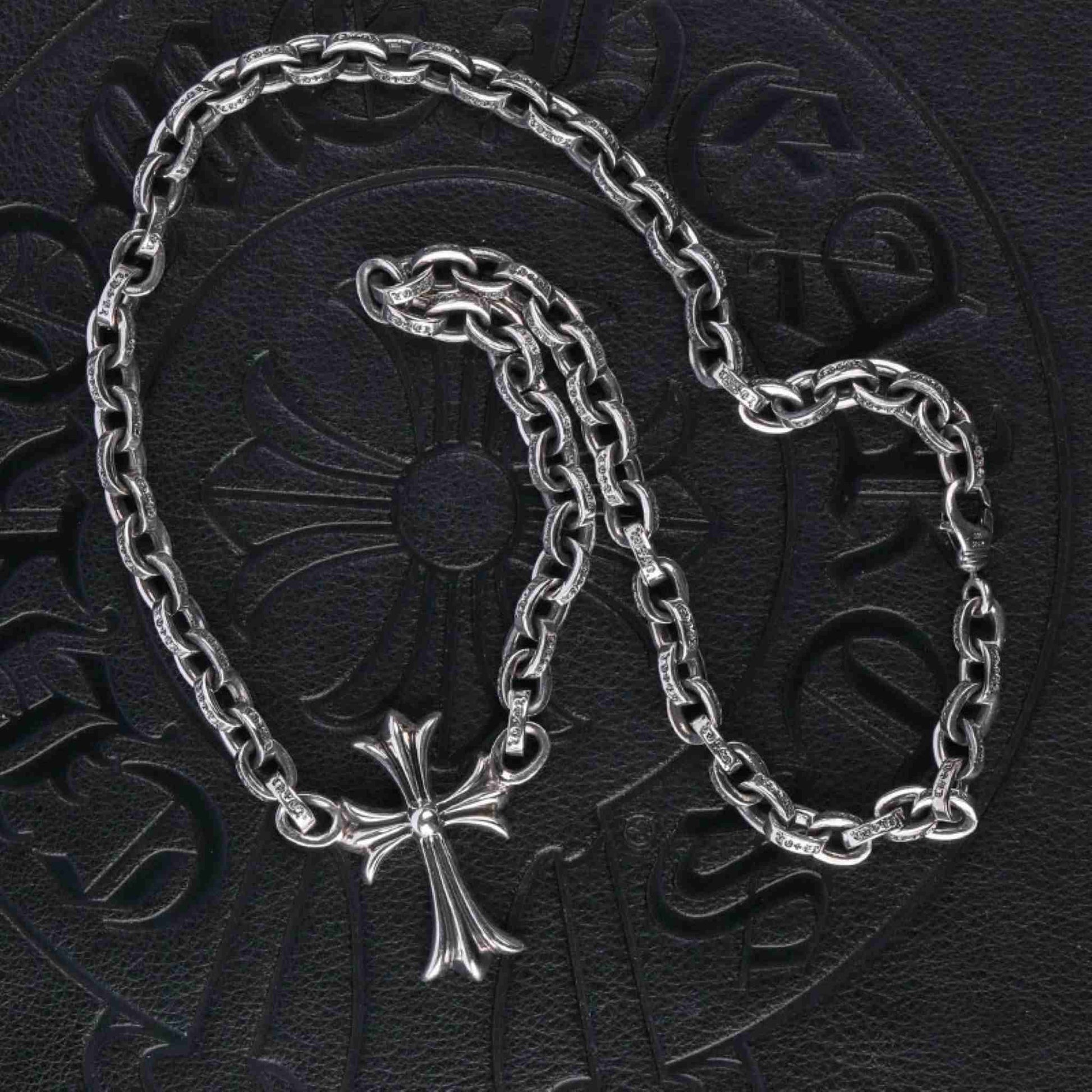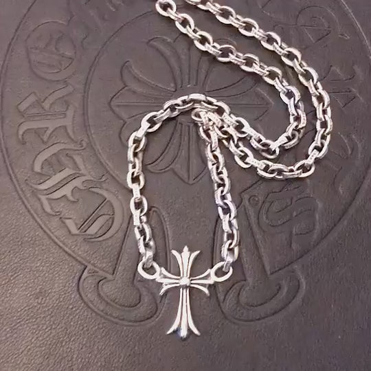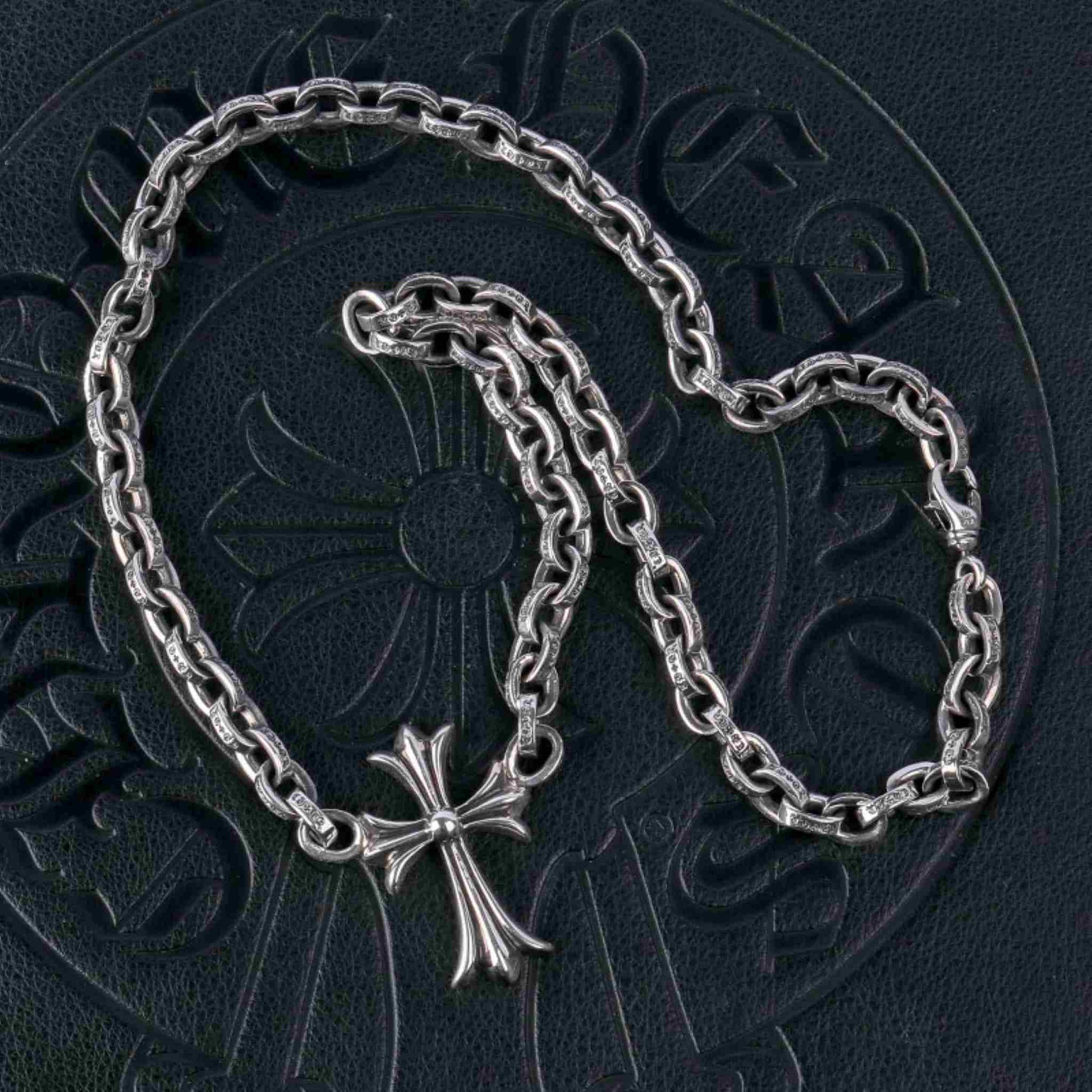 Chrome Hearts 8mm Paper Chain Cross Pendant Necklace, 925 Silver Letters Chunky Chain Necklaces