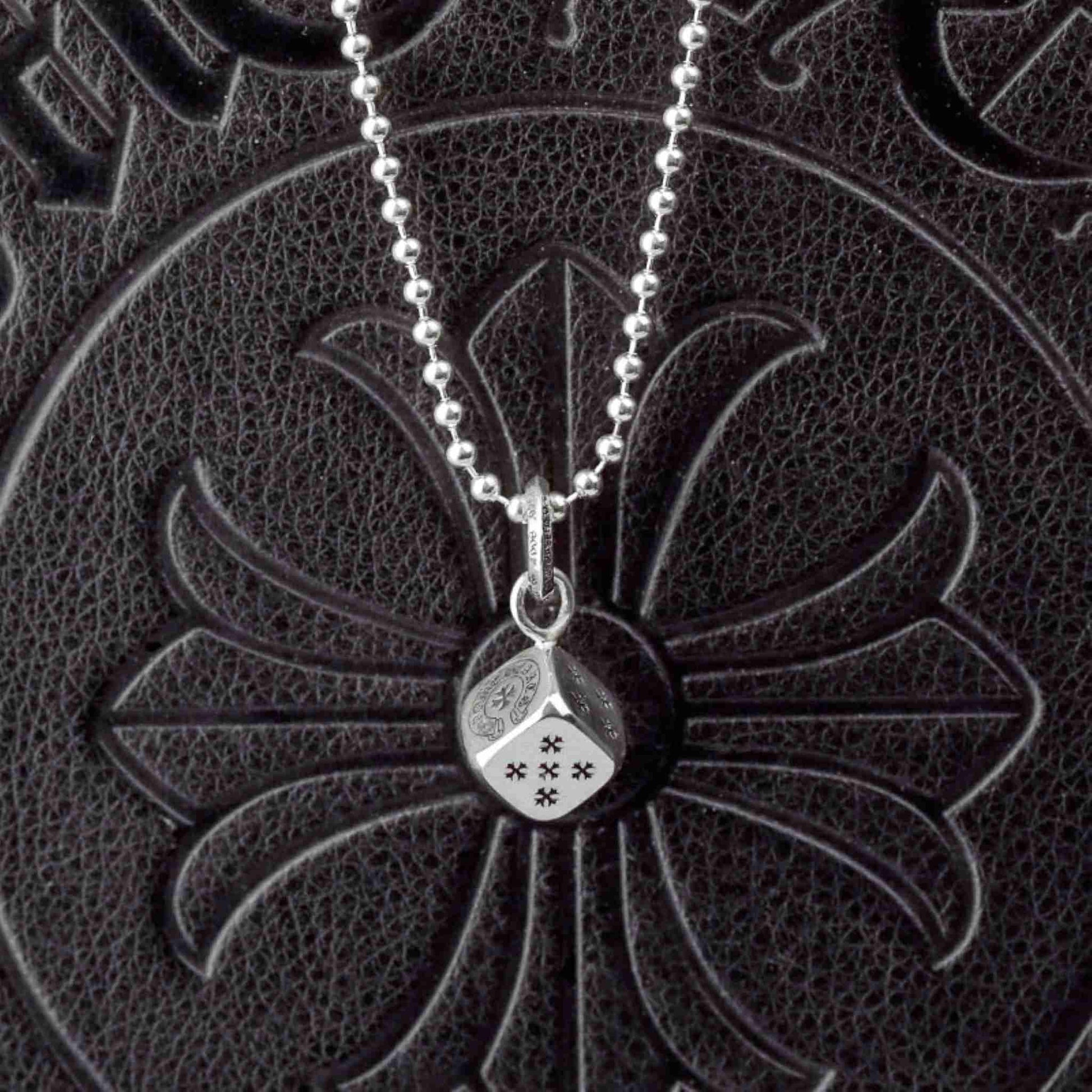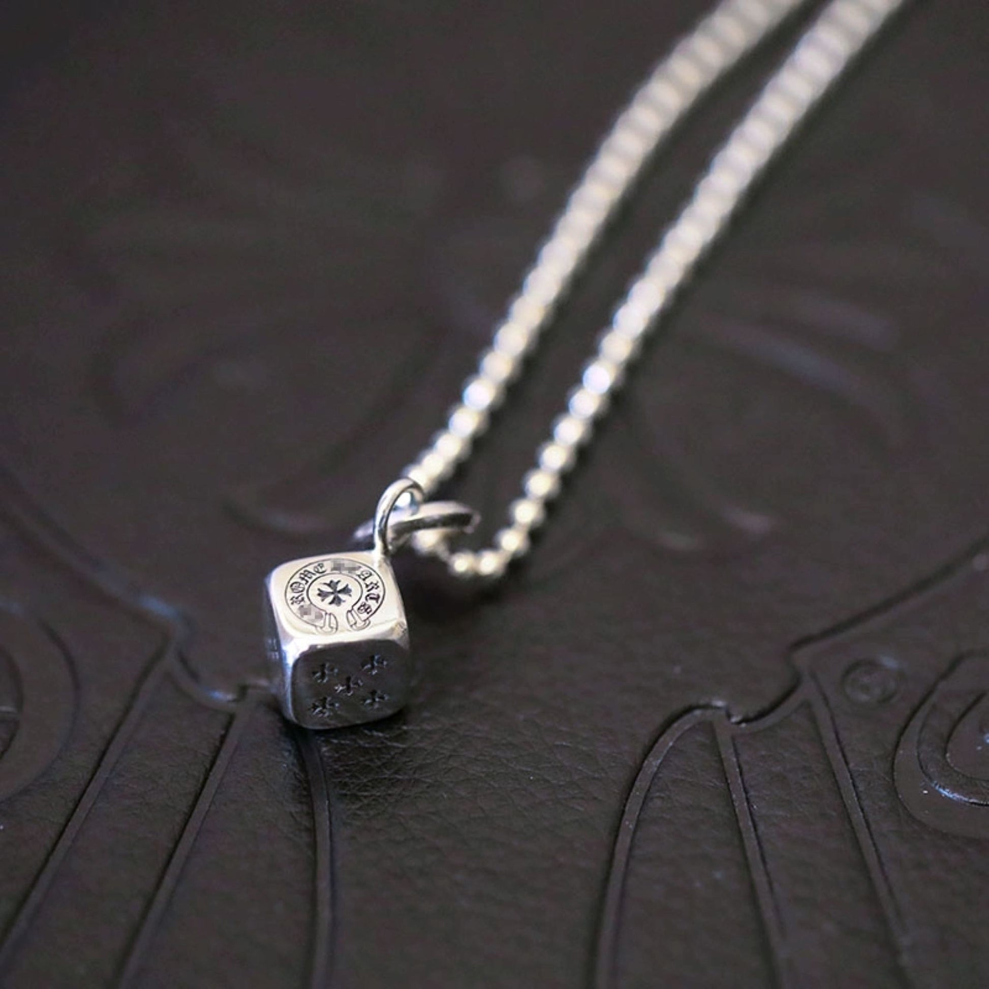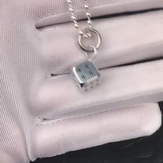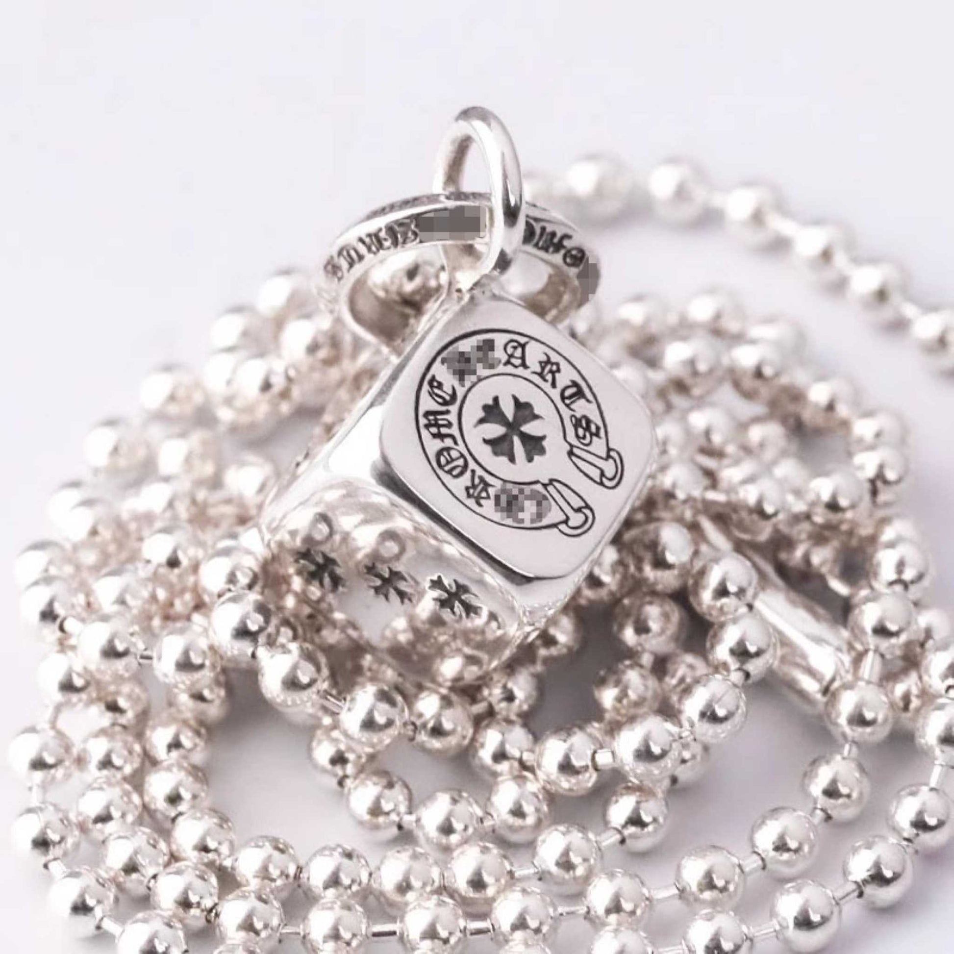 Chrome Hearts Cross Cube Dice Pendant Necklace, 925 Silver Charm Ball Chain Necklace