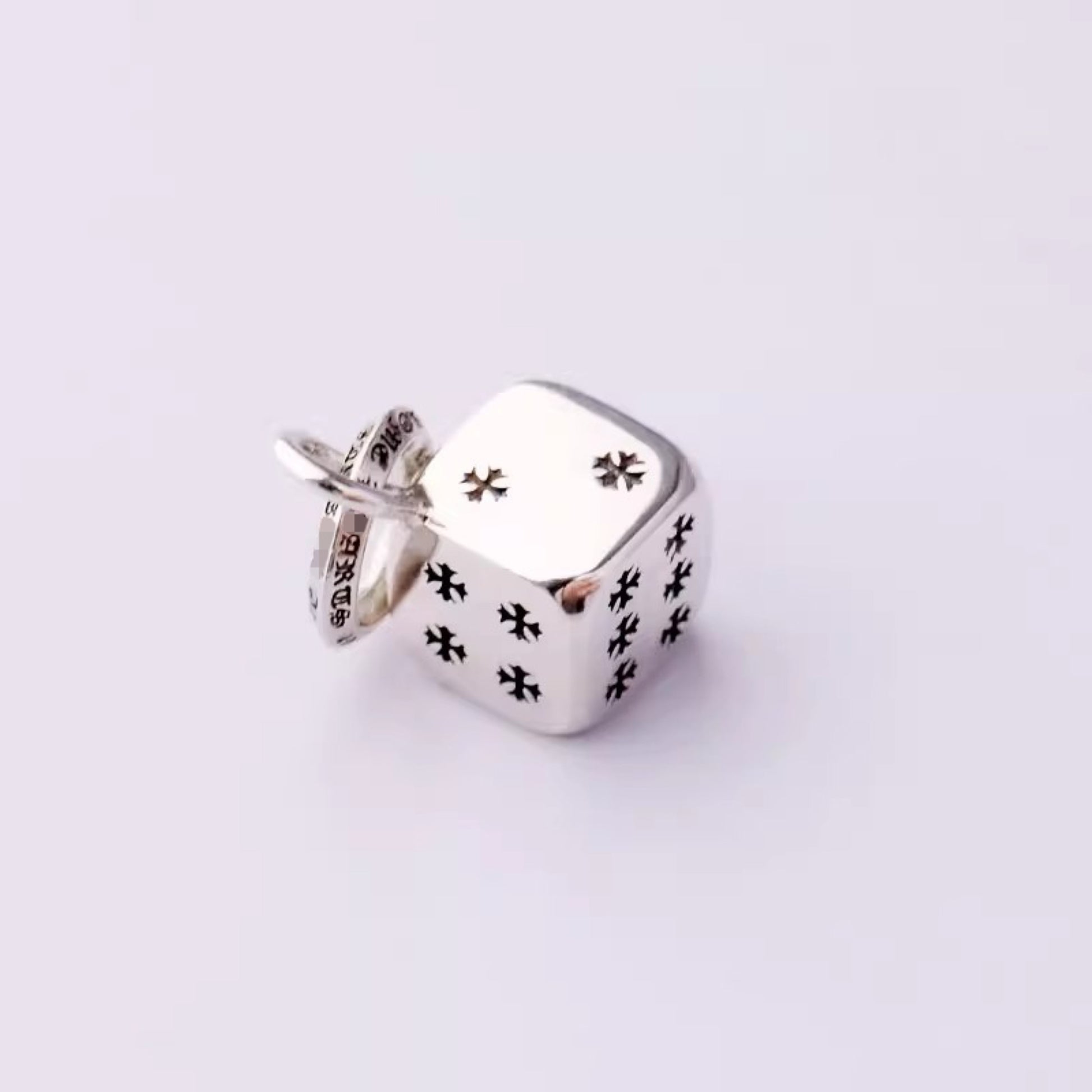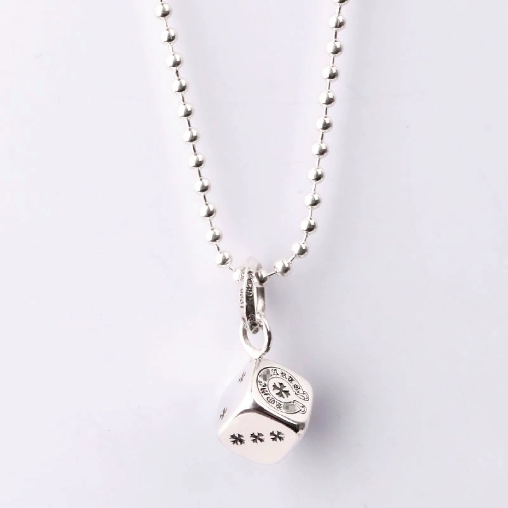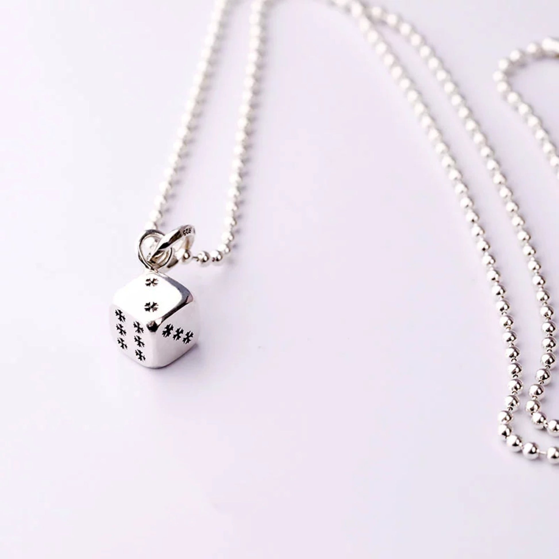 Chrome Hearts Cross Cube Dice Pendant Necklace, 925 Silver Charm Ball Chain Necklace