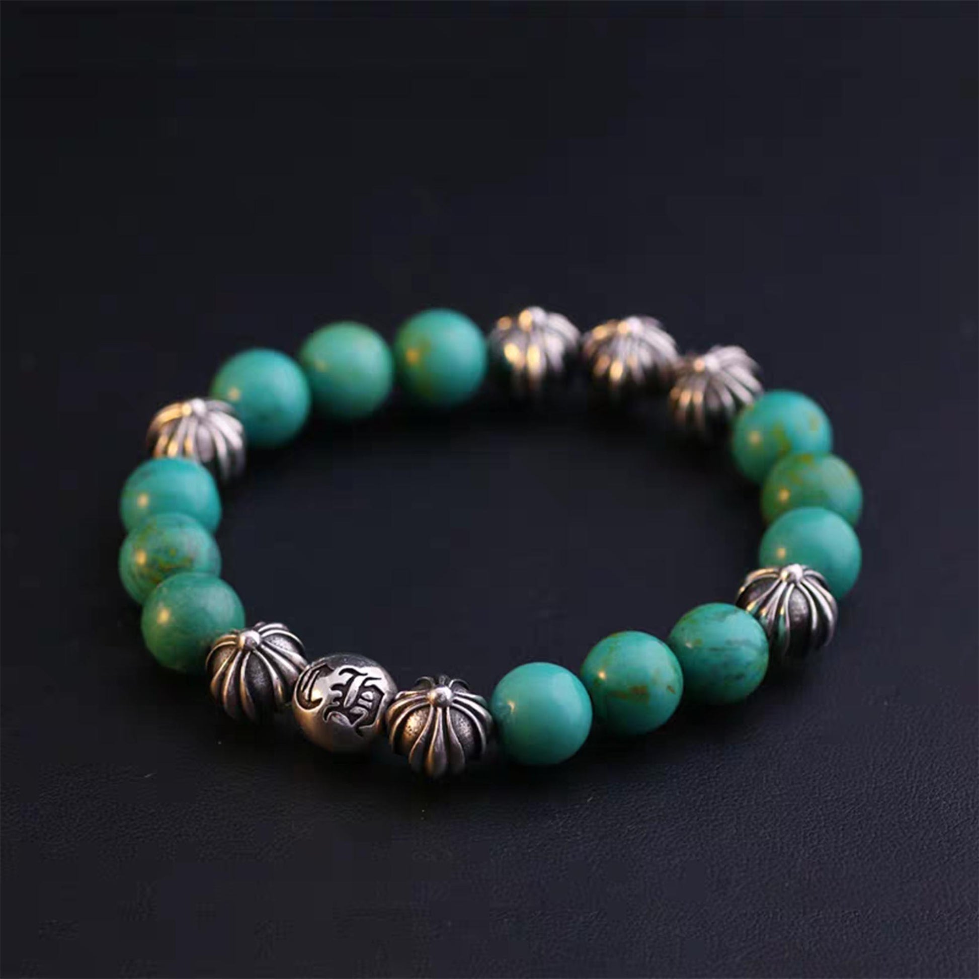 Chrome Hearts Cross & Letters Beads Bracelet, Turquoise & Solid Silver Ball Chain Bracelets
