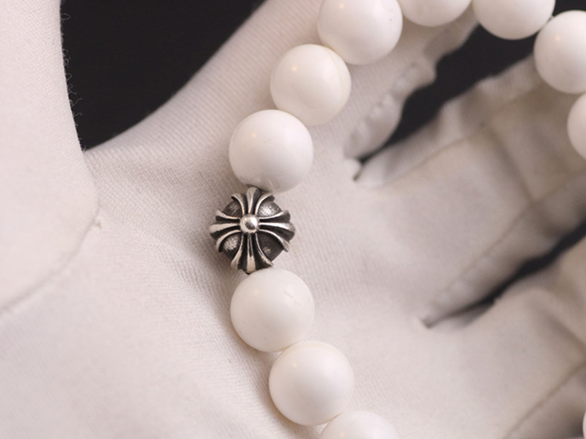 Chrome Hearts Cross & Letters Beads Bracelet, White Shell & Solid Silver Ball Chain Bracelets