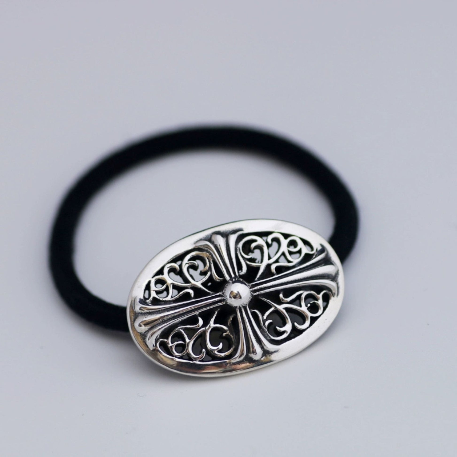 Chrome Hearts Cross & Vine Hair Ties & Bracelets, Sterling Silver Punk Statement Ponytail Holder