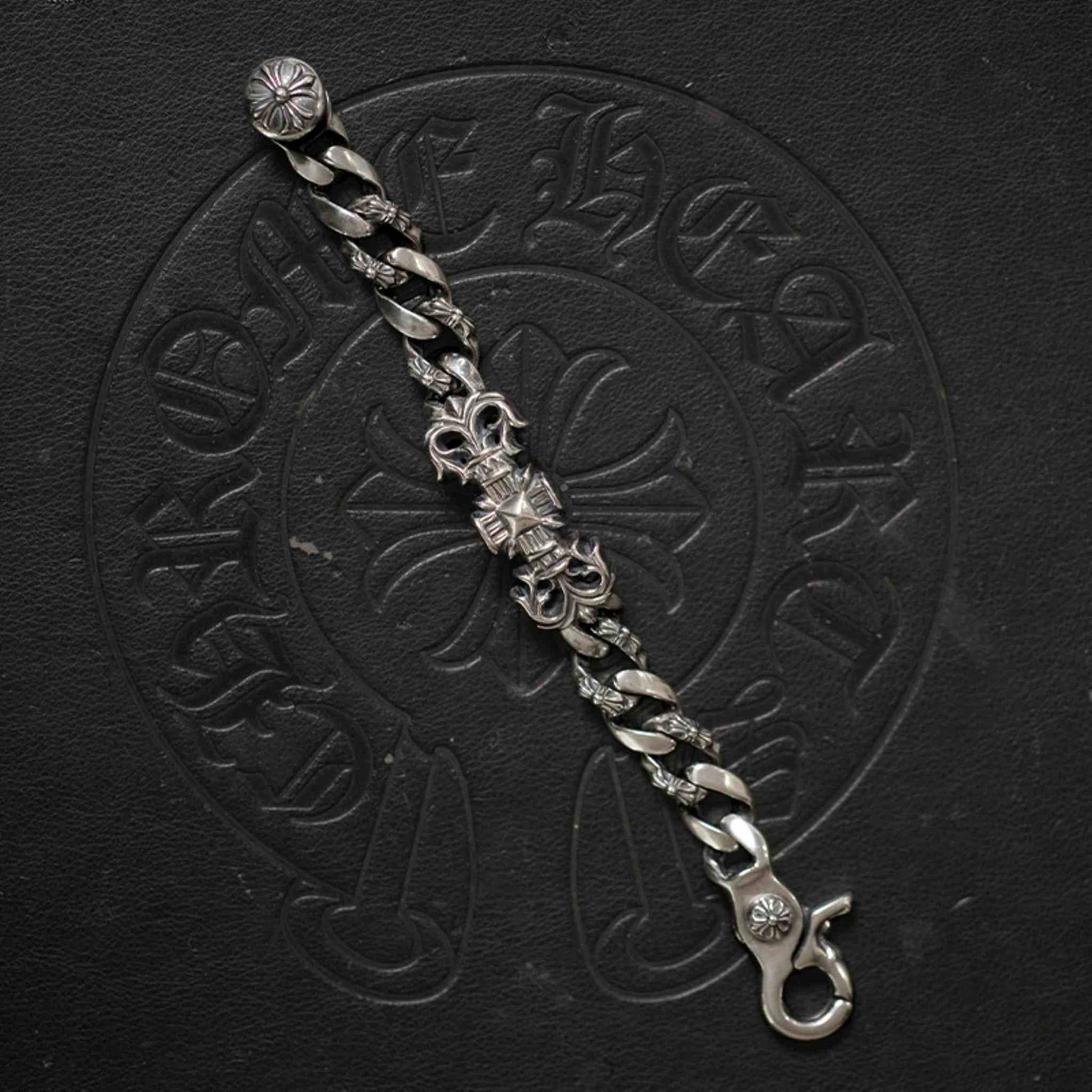 Chrome Hearts Flame Vine Cross Cuban Link Chunky Bracelet, 925 Silver Punk Statement Clip-on Chain Bracelets