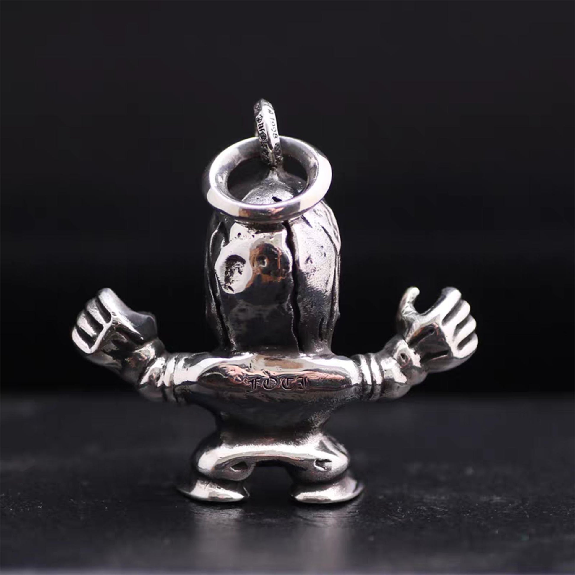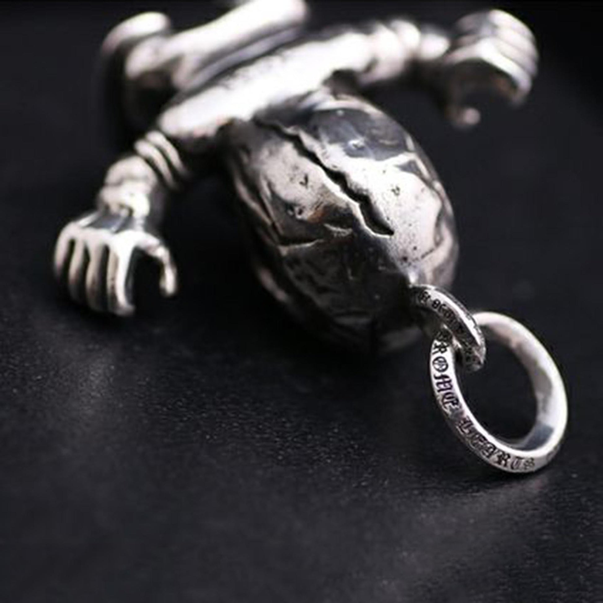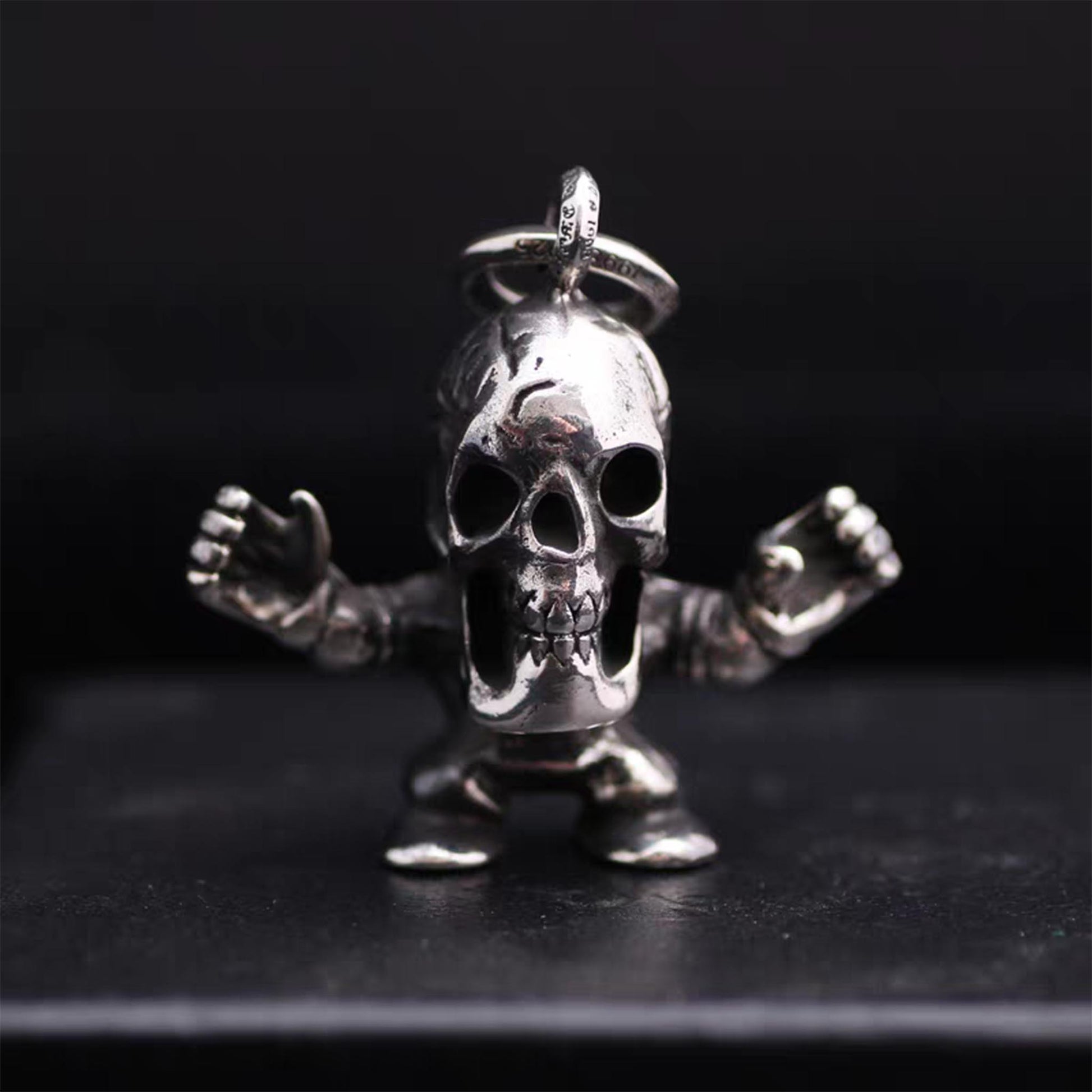 Chrome Hearts Foti Harris Teeter Necklace Pendant, Sterling Silver Skull Charm, Punk Statement Silver Jewelry