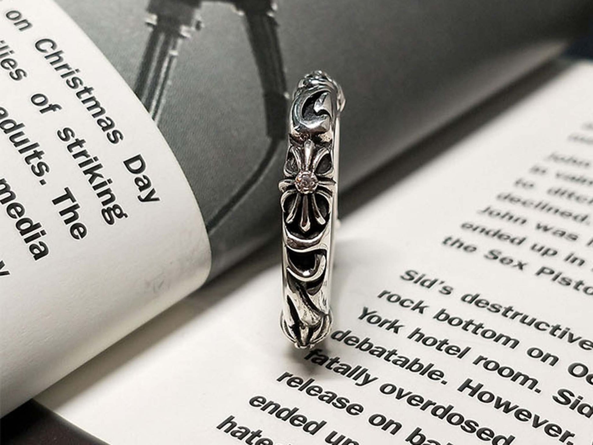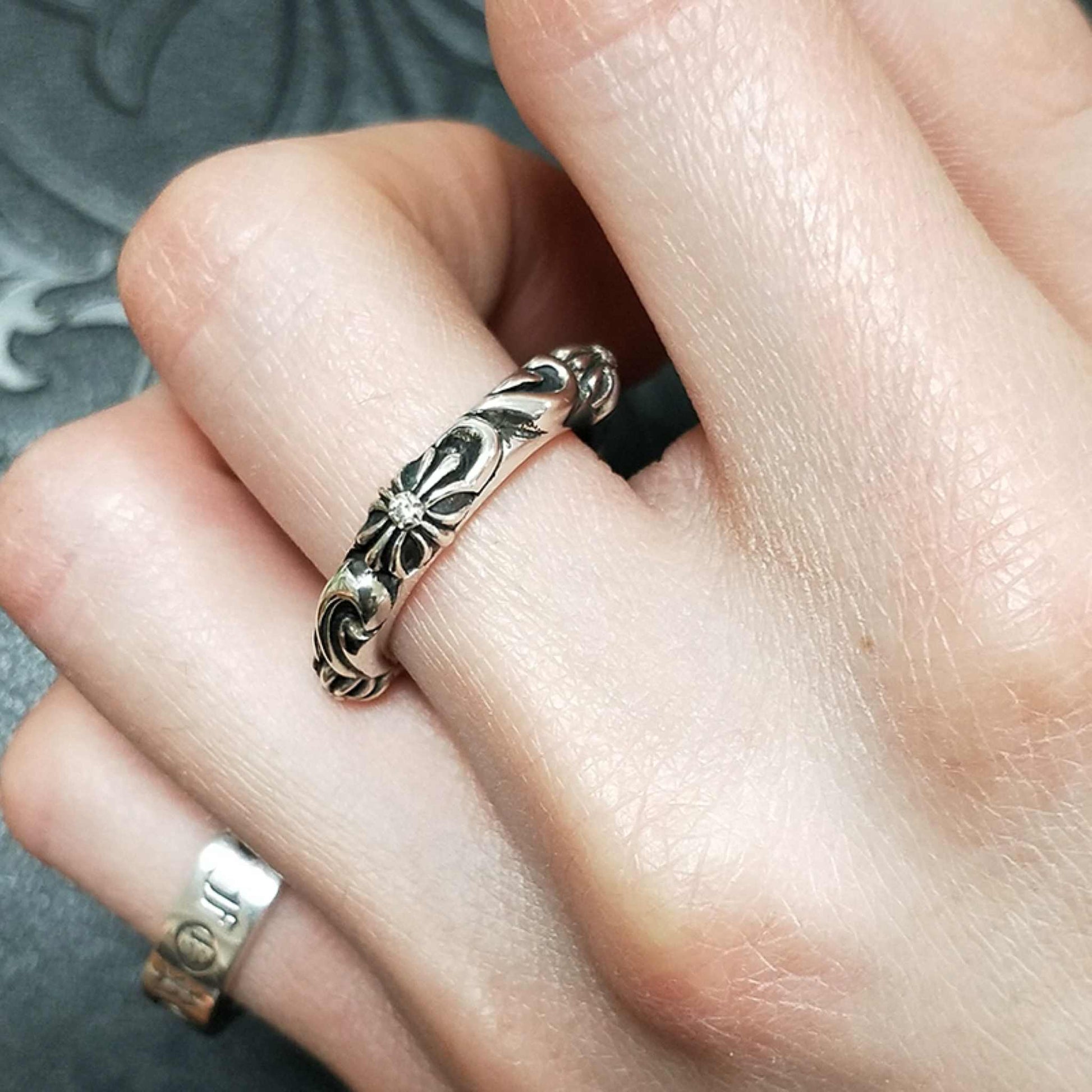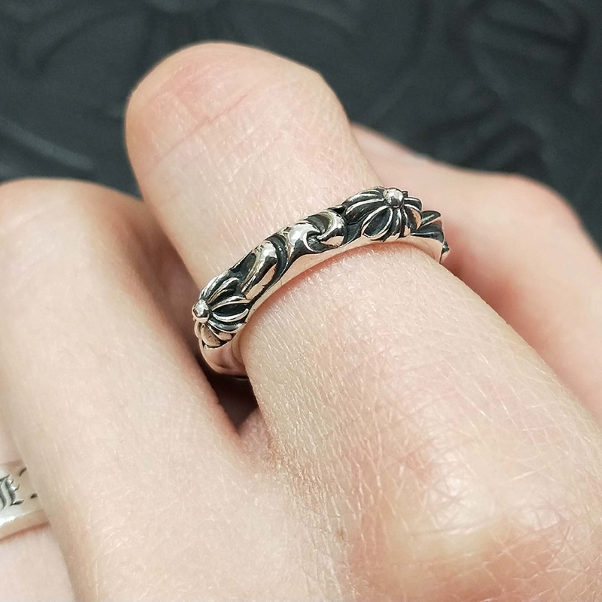Chrome Hearts Four Crosses Flower Ring, 925 Silver Punk Statement Ring for Couples
