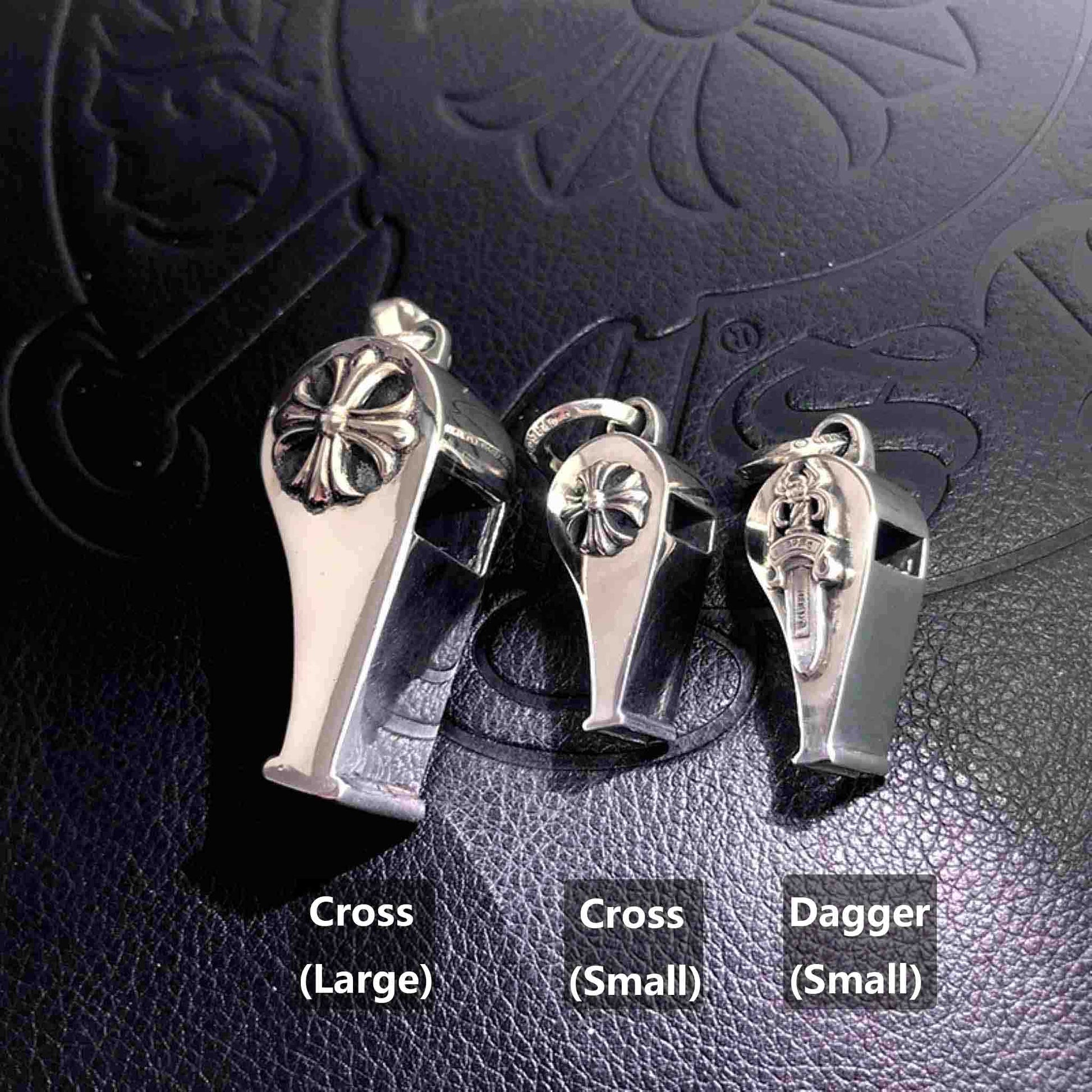 Chrome Hearts Gothic Cross & Dagger Whistle Pendants, 925 Silver Punk Statement Charms