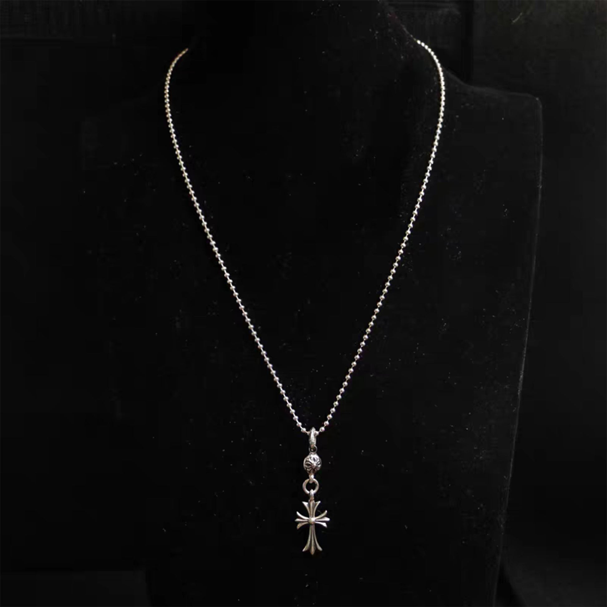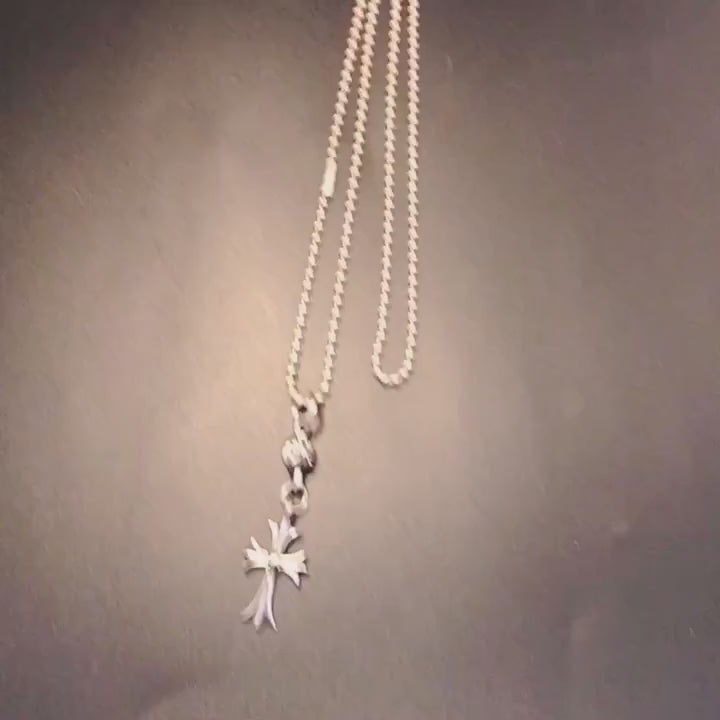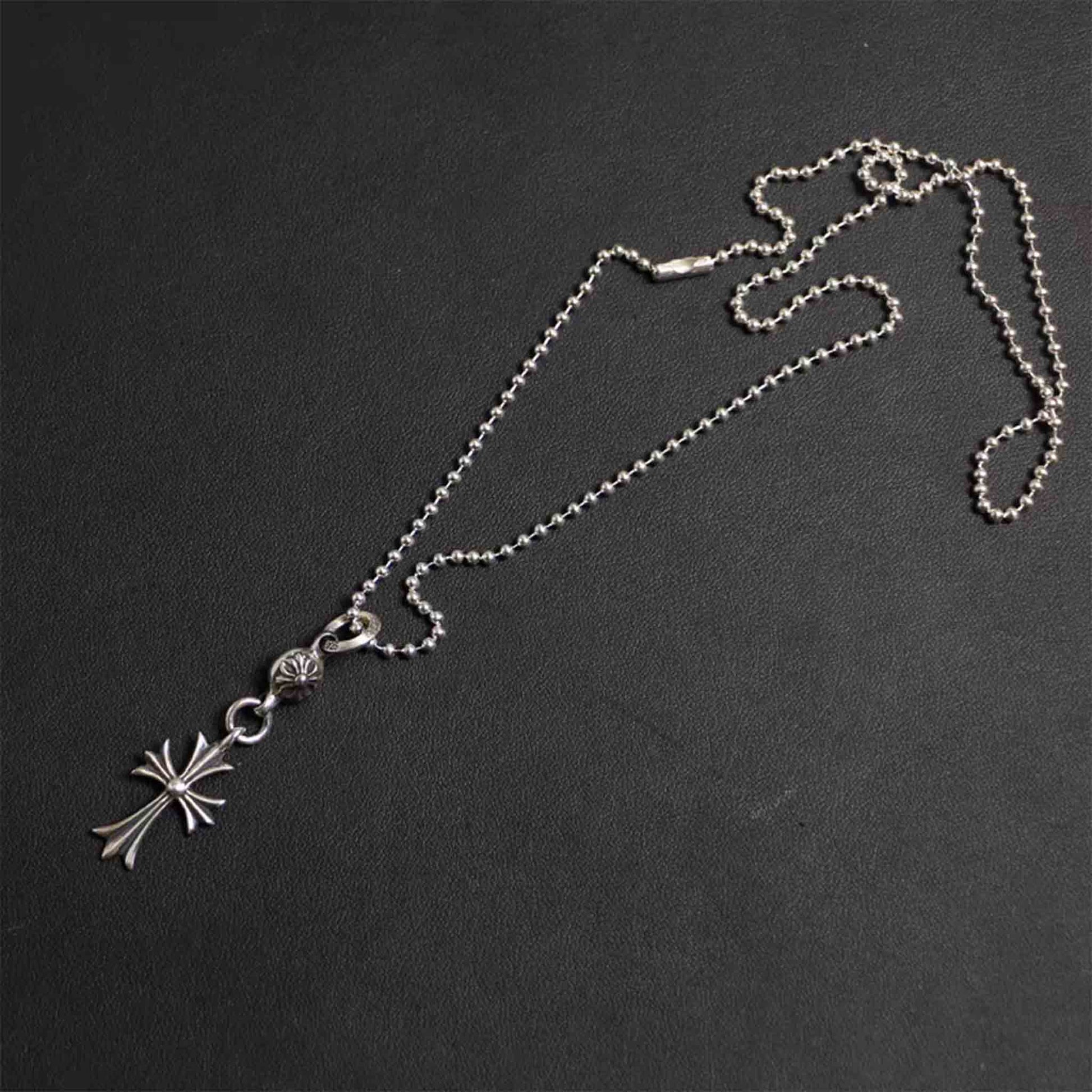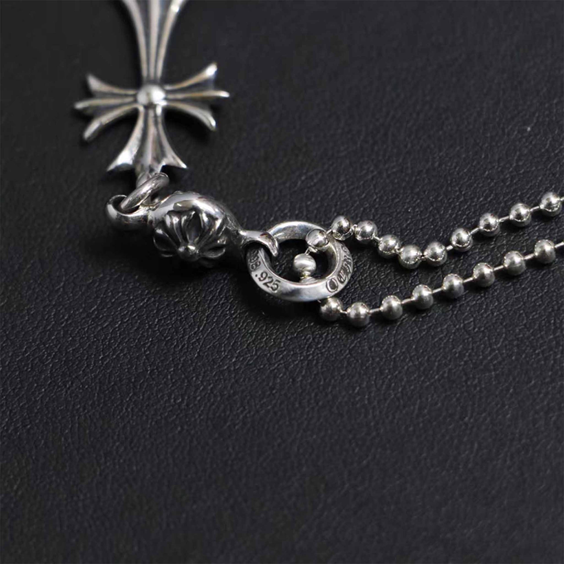 Chrome Hearts Gothic Cross Pendant Necklace, Sterling Silver Cross Charm Ball Chain Necklace