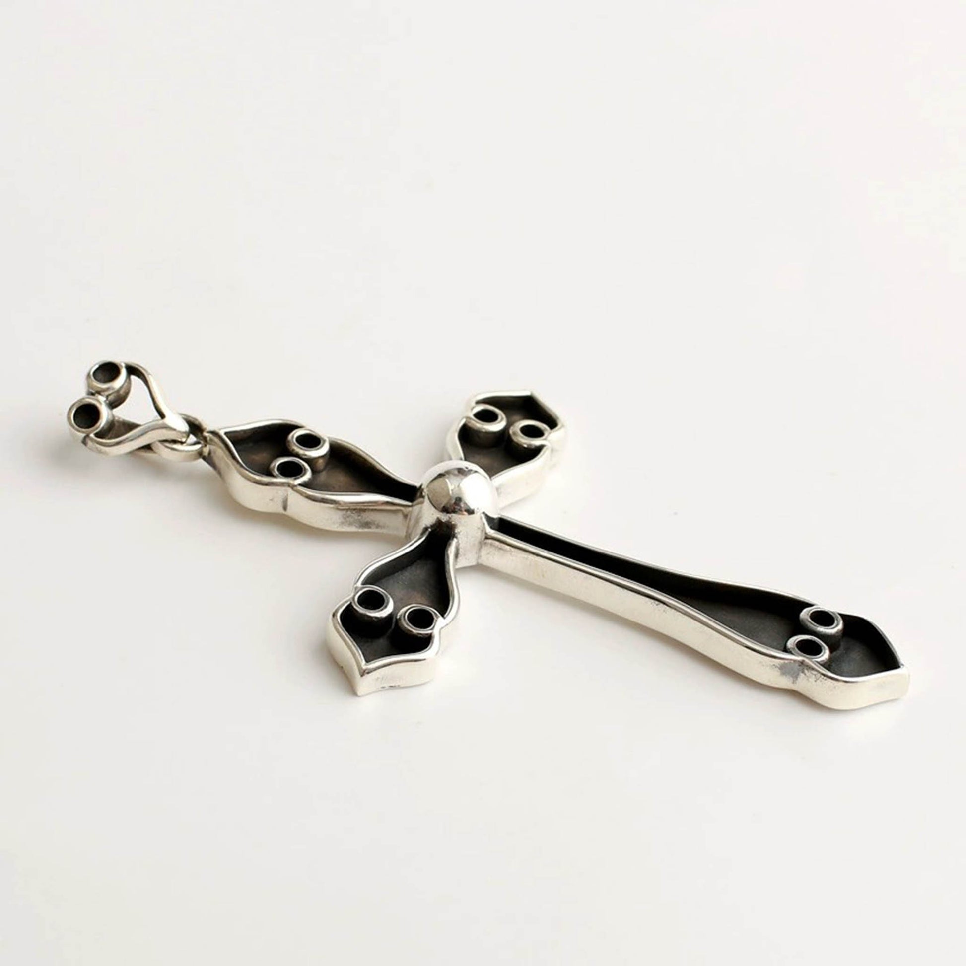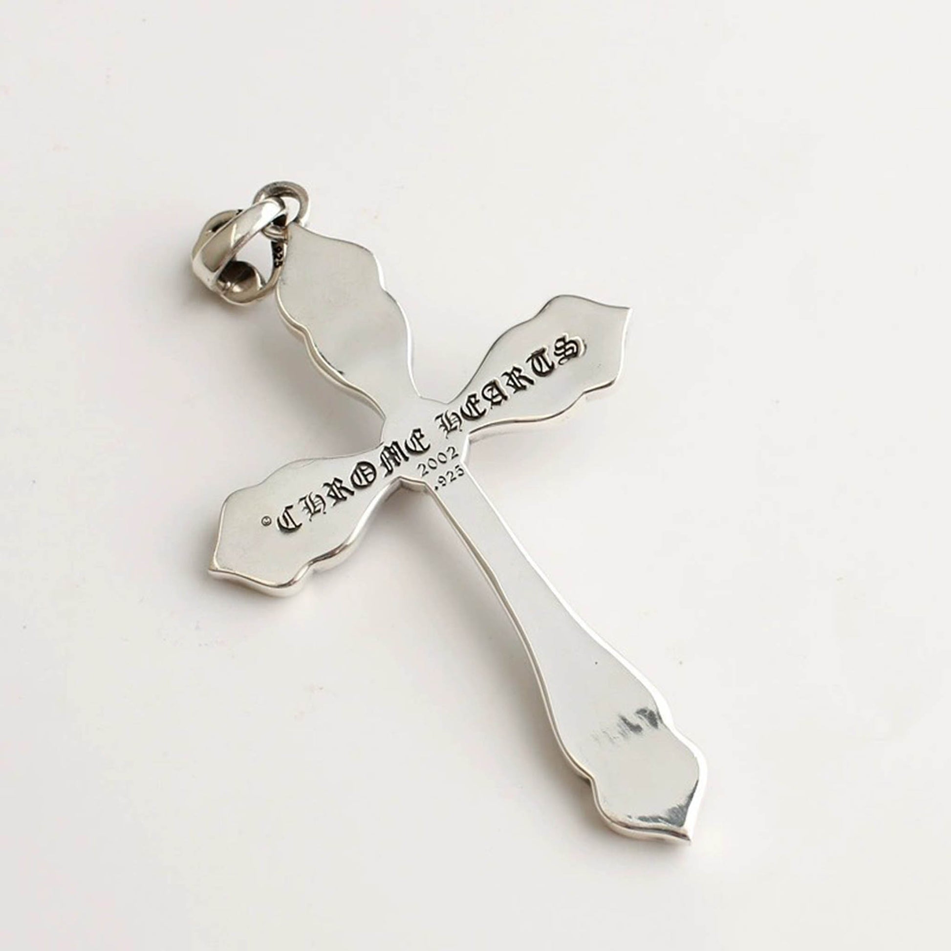 Chrome Hearts Large Flower-shaped Cross Necklace Pendant, Sterling Silver Statement Gothic Cross Charm