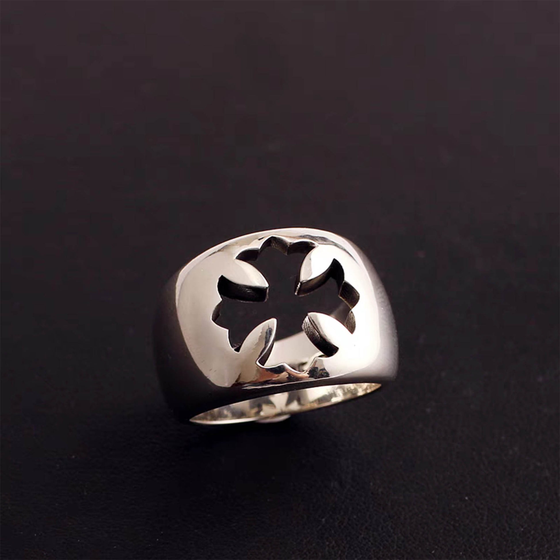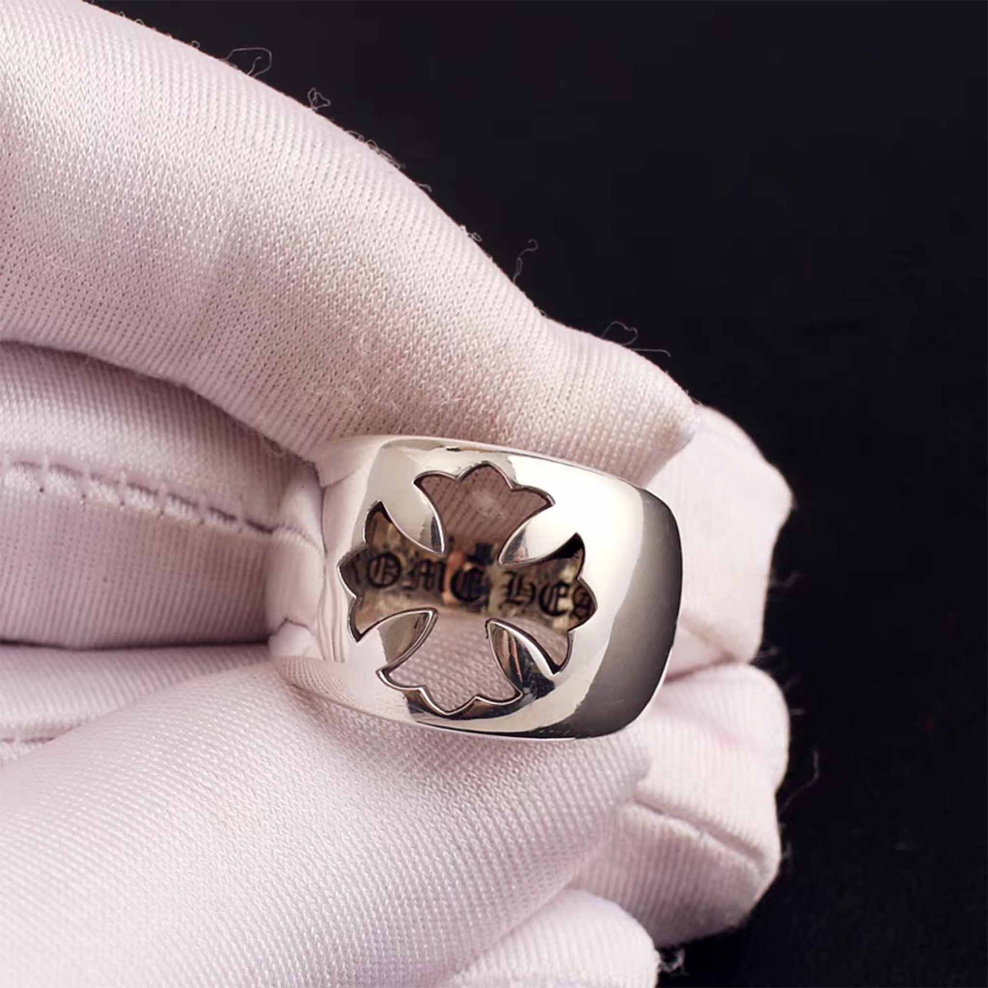 Chrome Hearts Large Hollow Cross Ring, Sterling Silver Punk Statement Rings