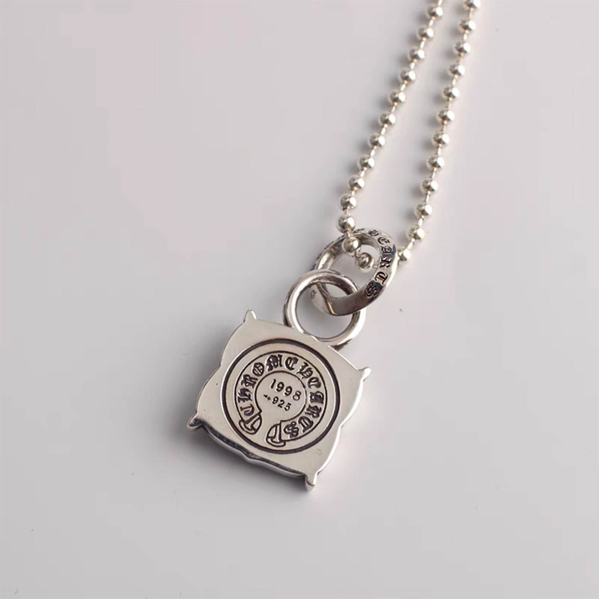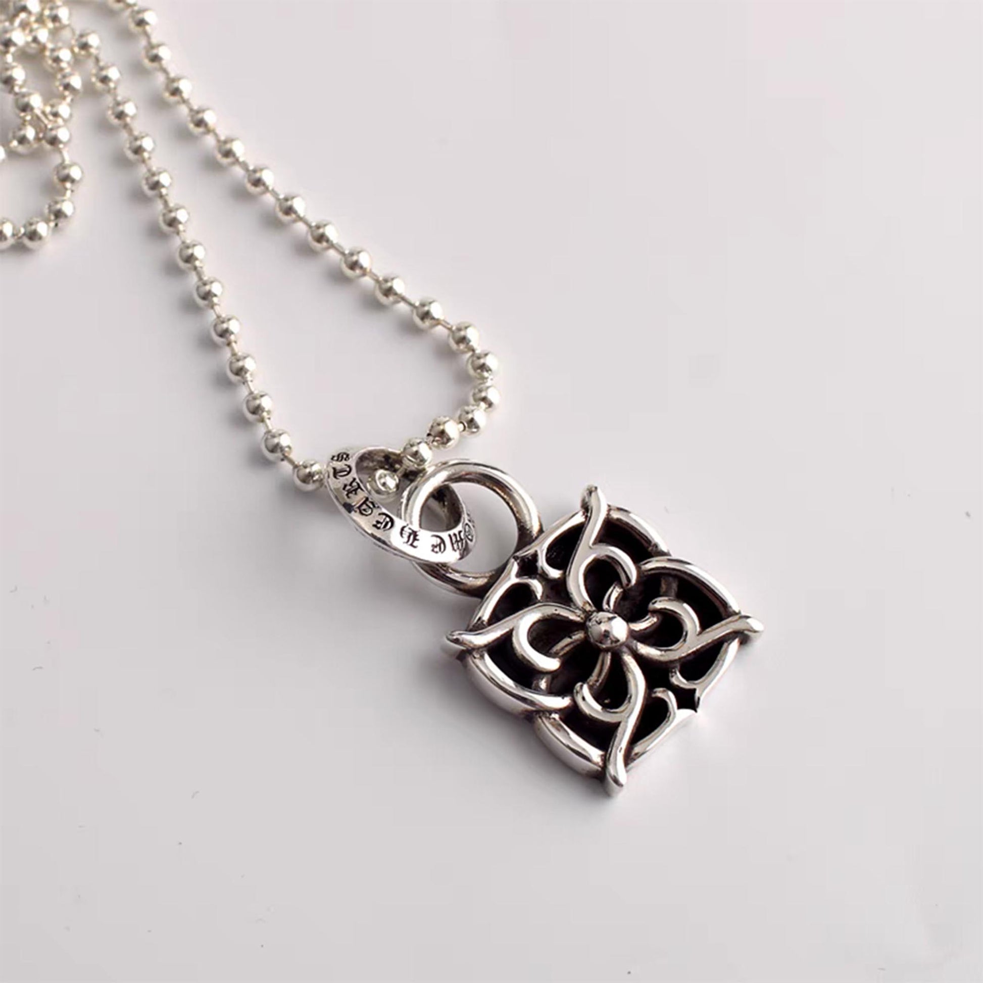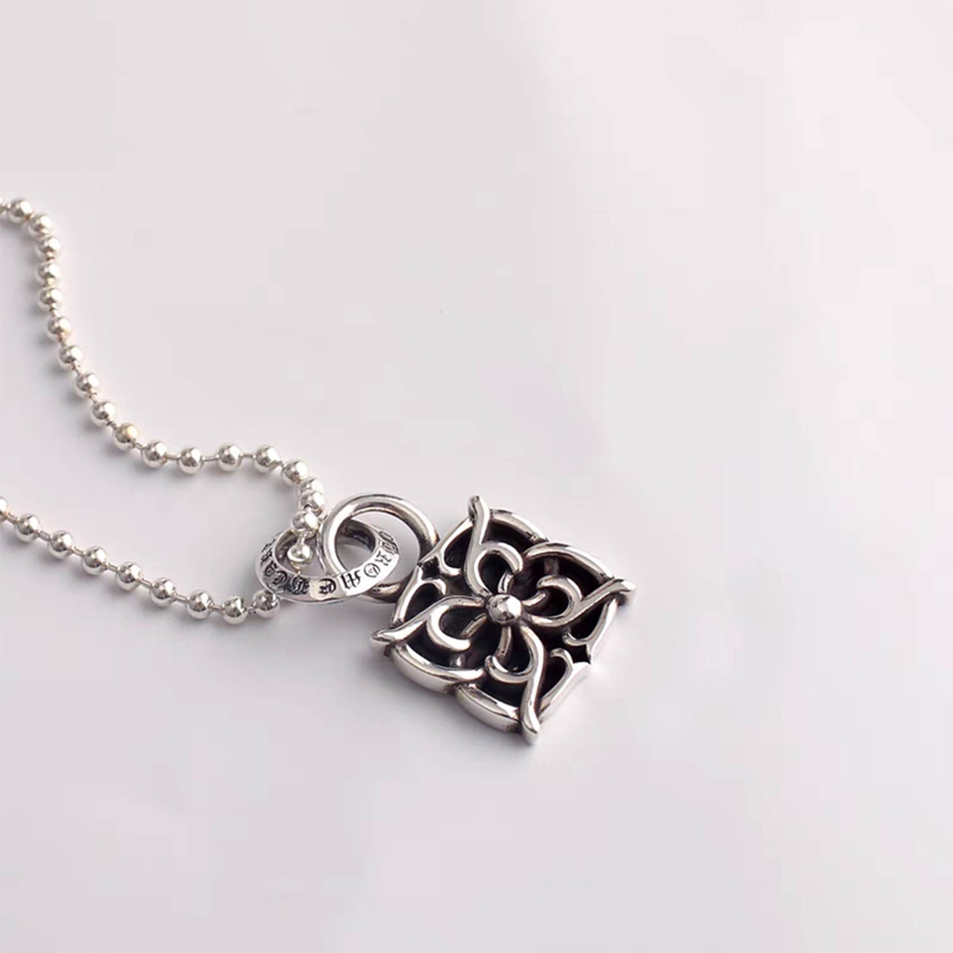 Chrome Hearts Square Vine Necklace Pendant, Sterling Silver Charm Ball Chain Necklace
