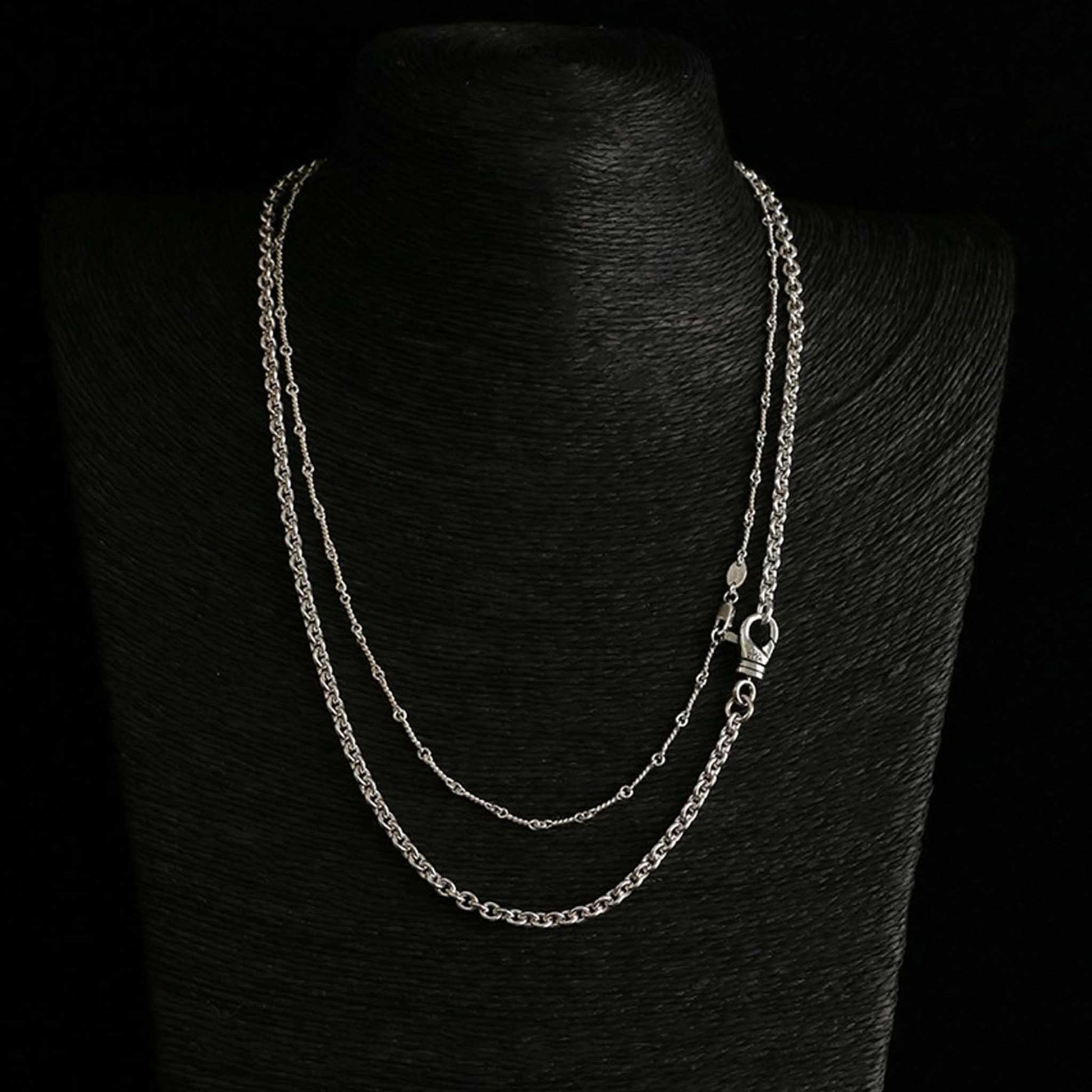 Chrome Hearts Stacking Necklace Set, Sterling Silver Rolo & Twist Chain Double Chain Necklaces
