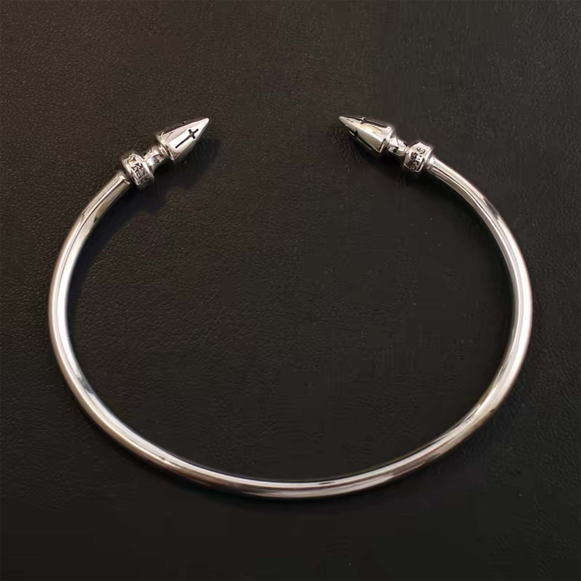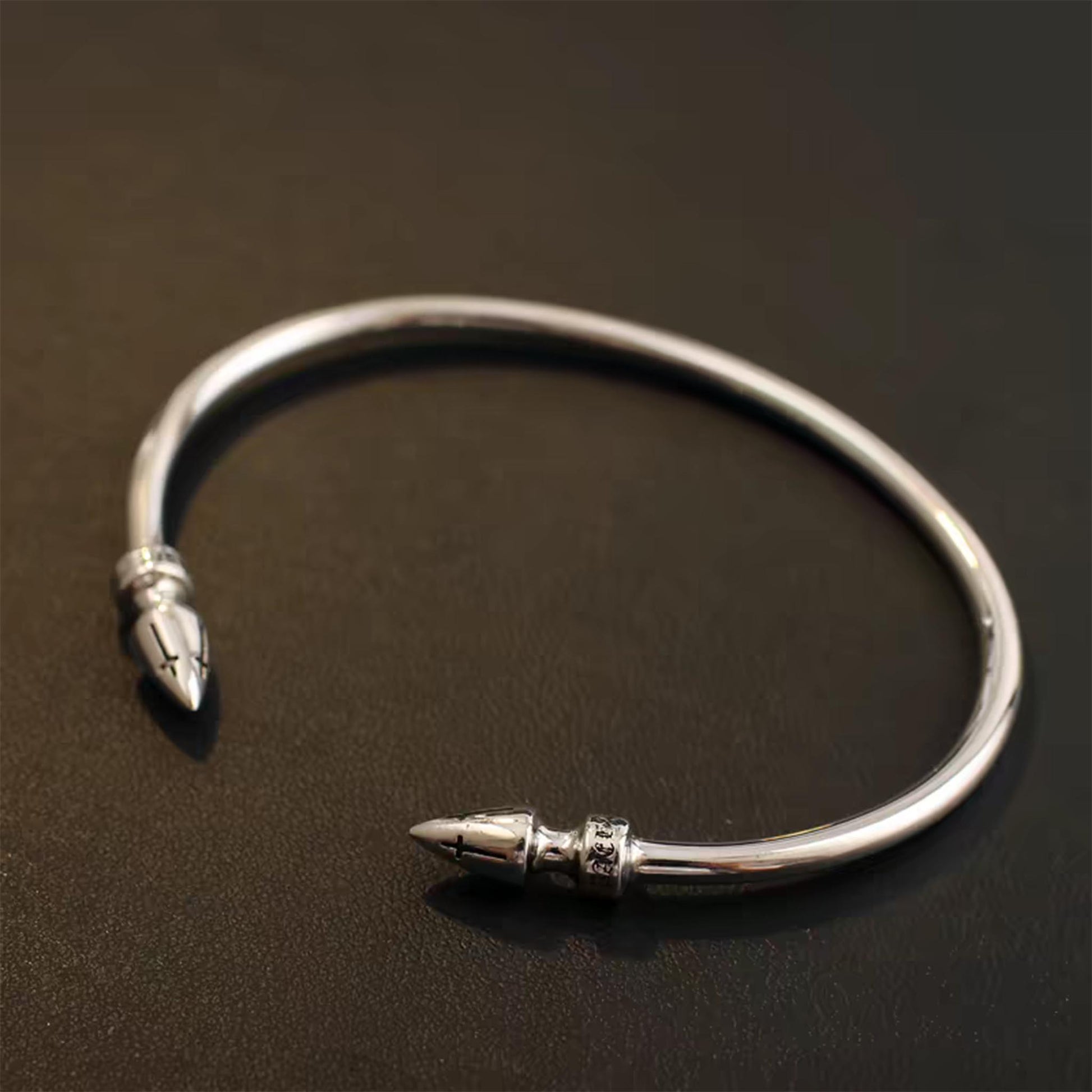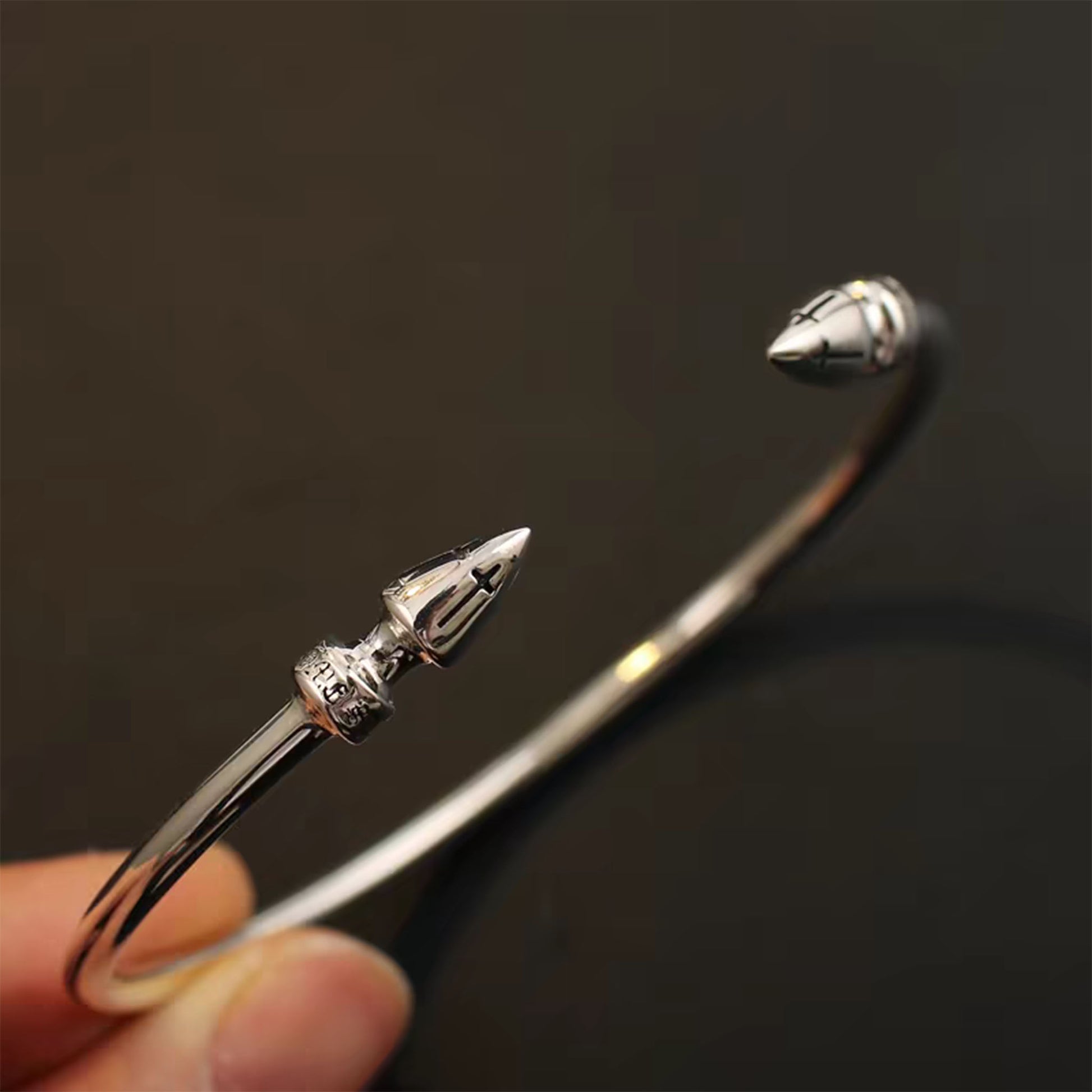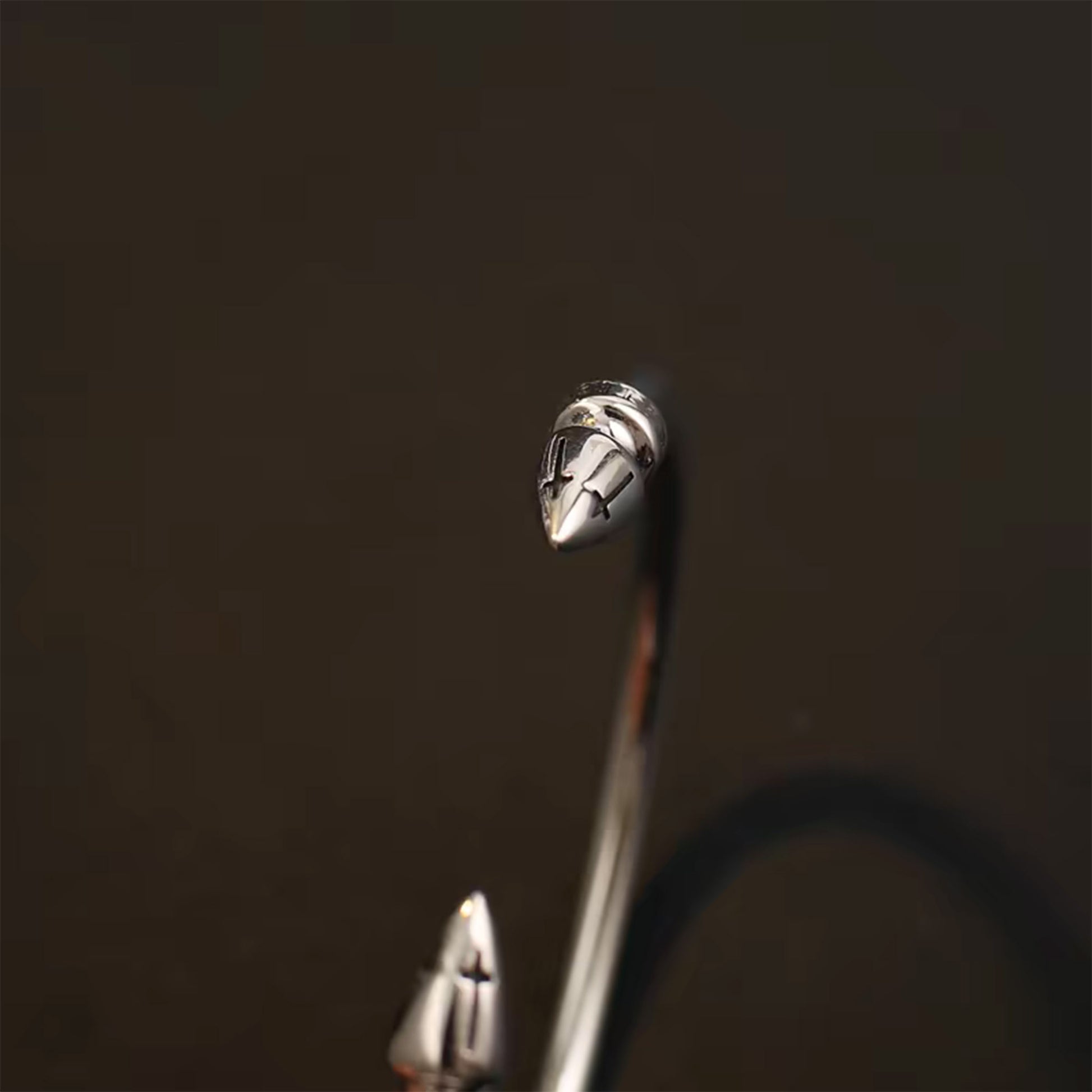 Chrome Hearts Sterling Silver Open Bracelet, Bullet Head Bangle, Punk Statement Bracelets