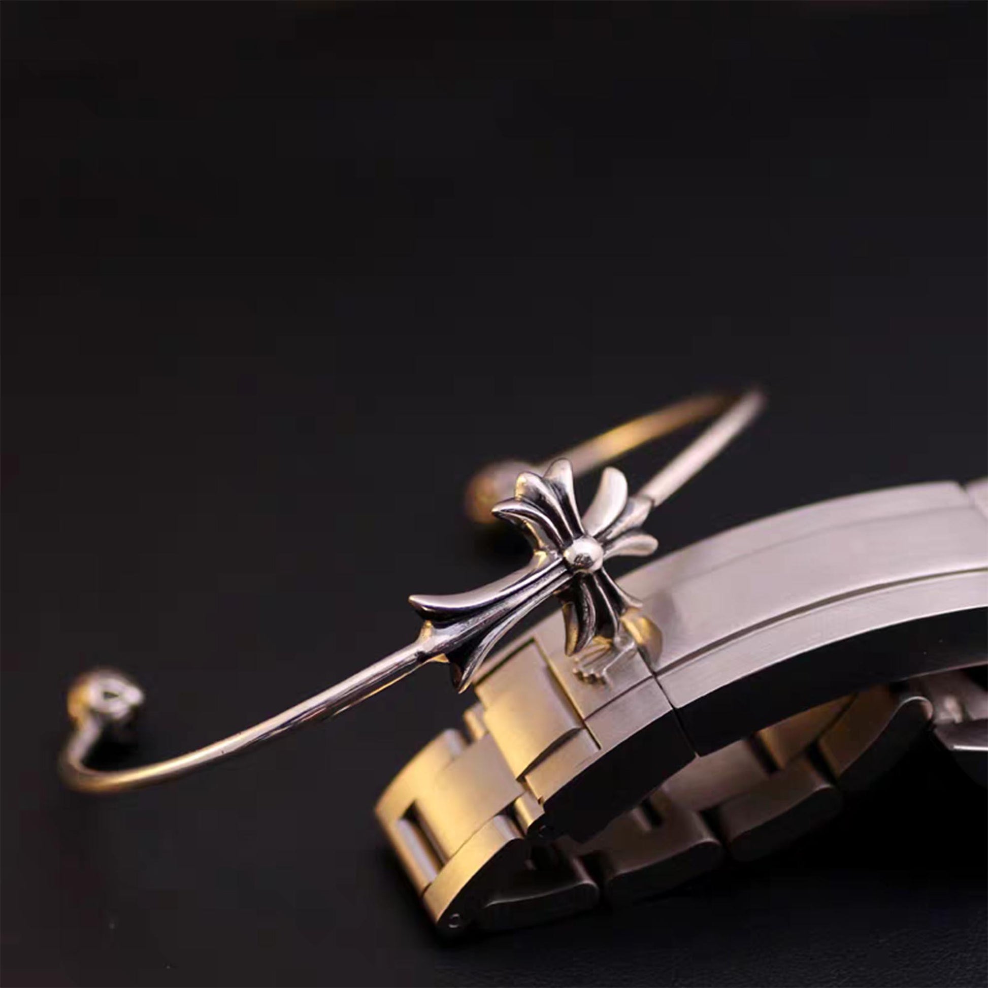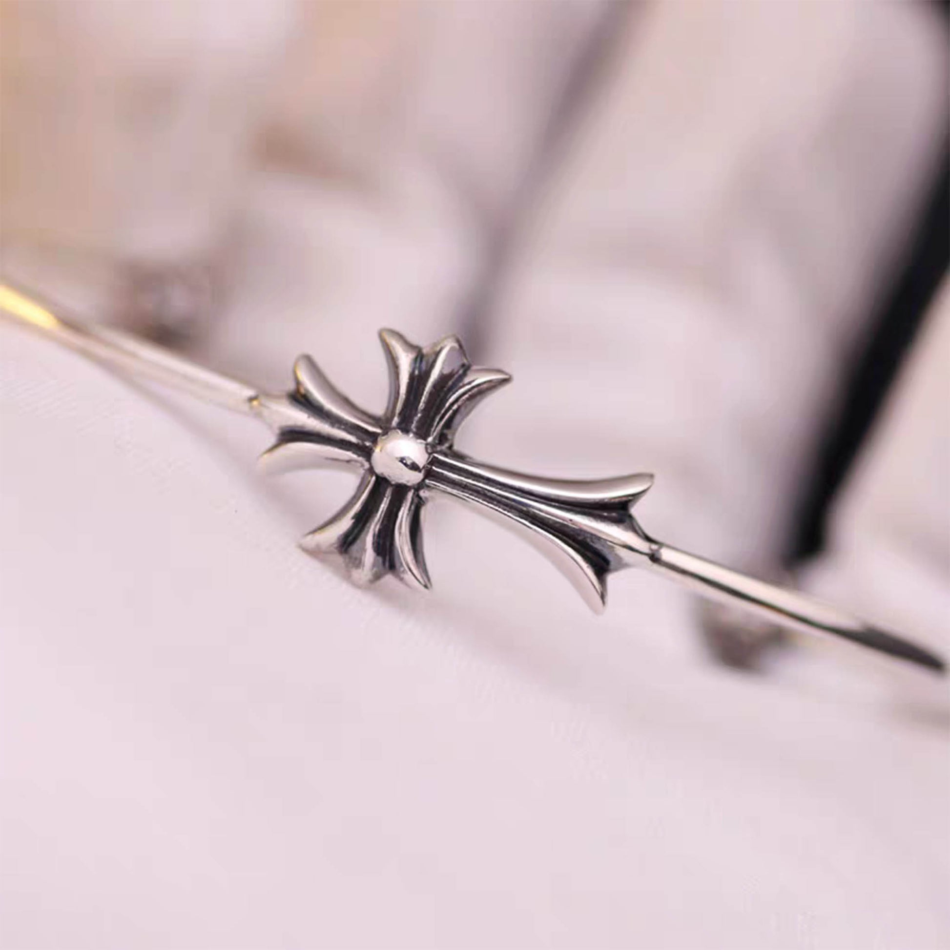 This classic Chrome Hearts bangle has gorgeous shape and exquisite details, the texture is clear and quite different from the low-end products, please feel free to compare them.