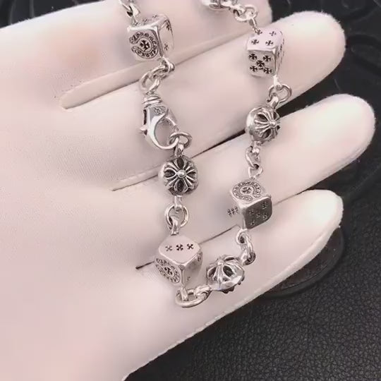 Chrome Hearts Style Cross Cube Dice Bracelet, Sterling Silver Punk Statement Bracelets