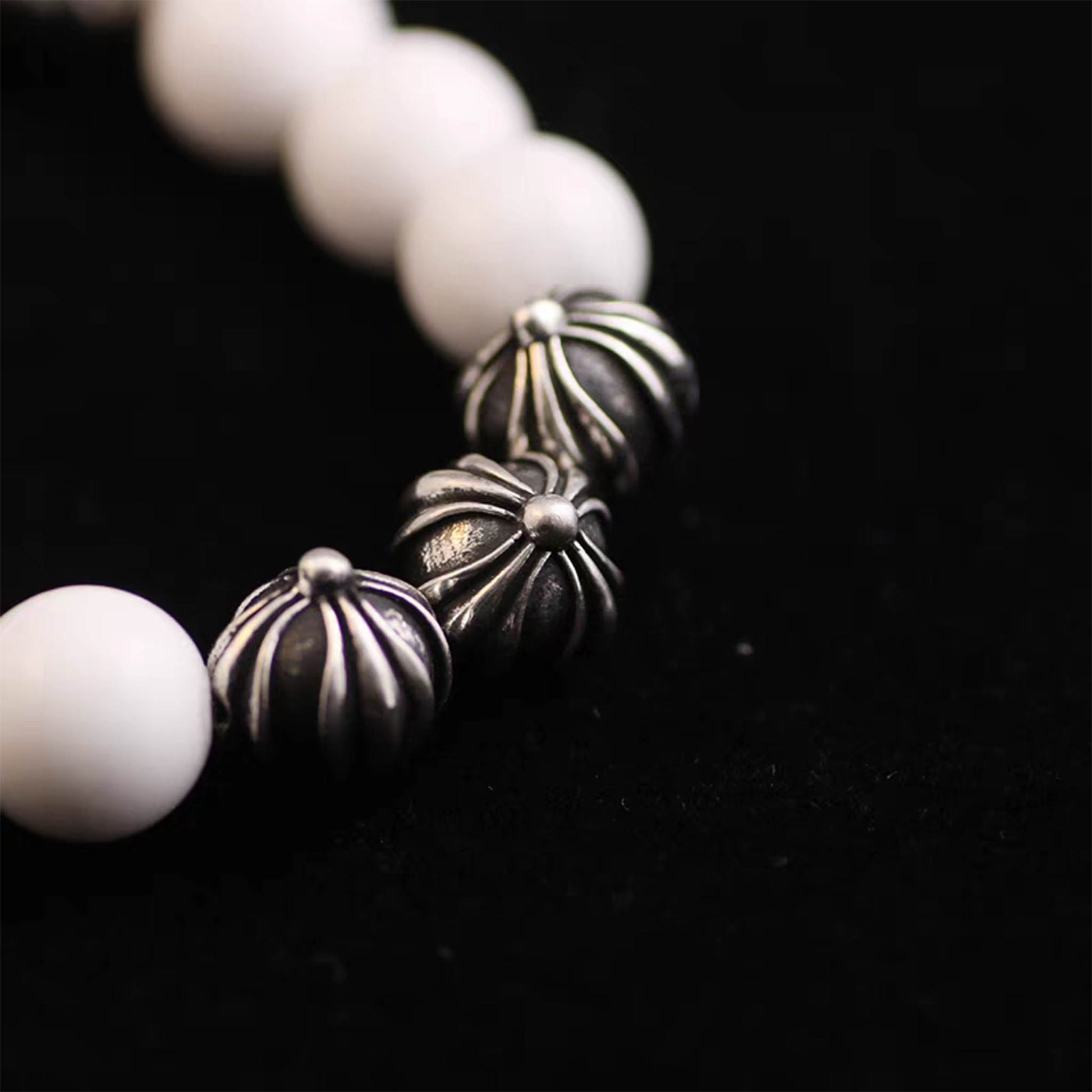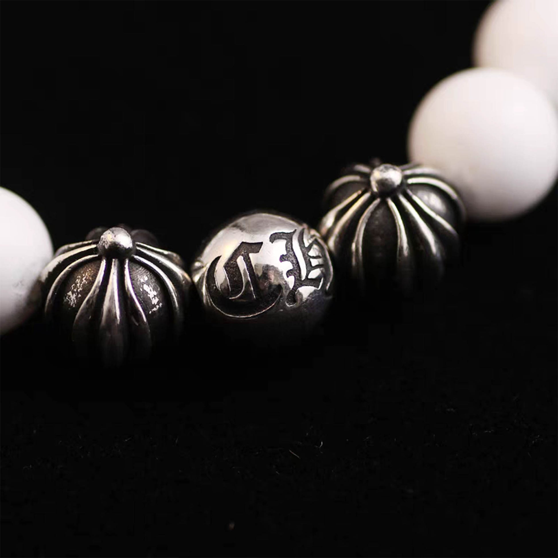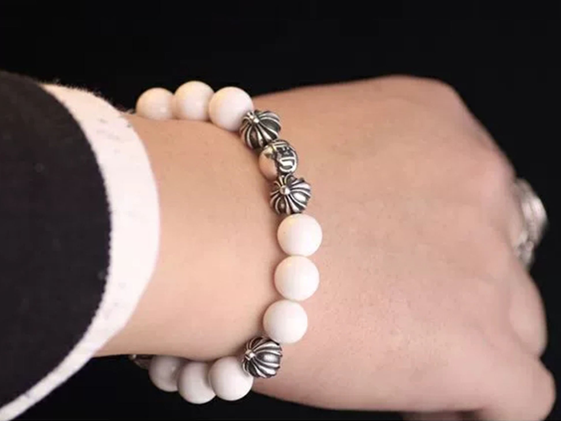 Chrome Hearts White Shell & Solid Silver Beads Bracelet, Gothic Cross & Letters Ball Chain Bracelets