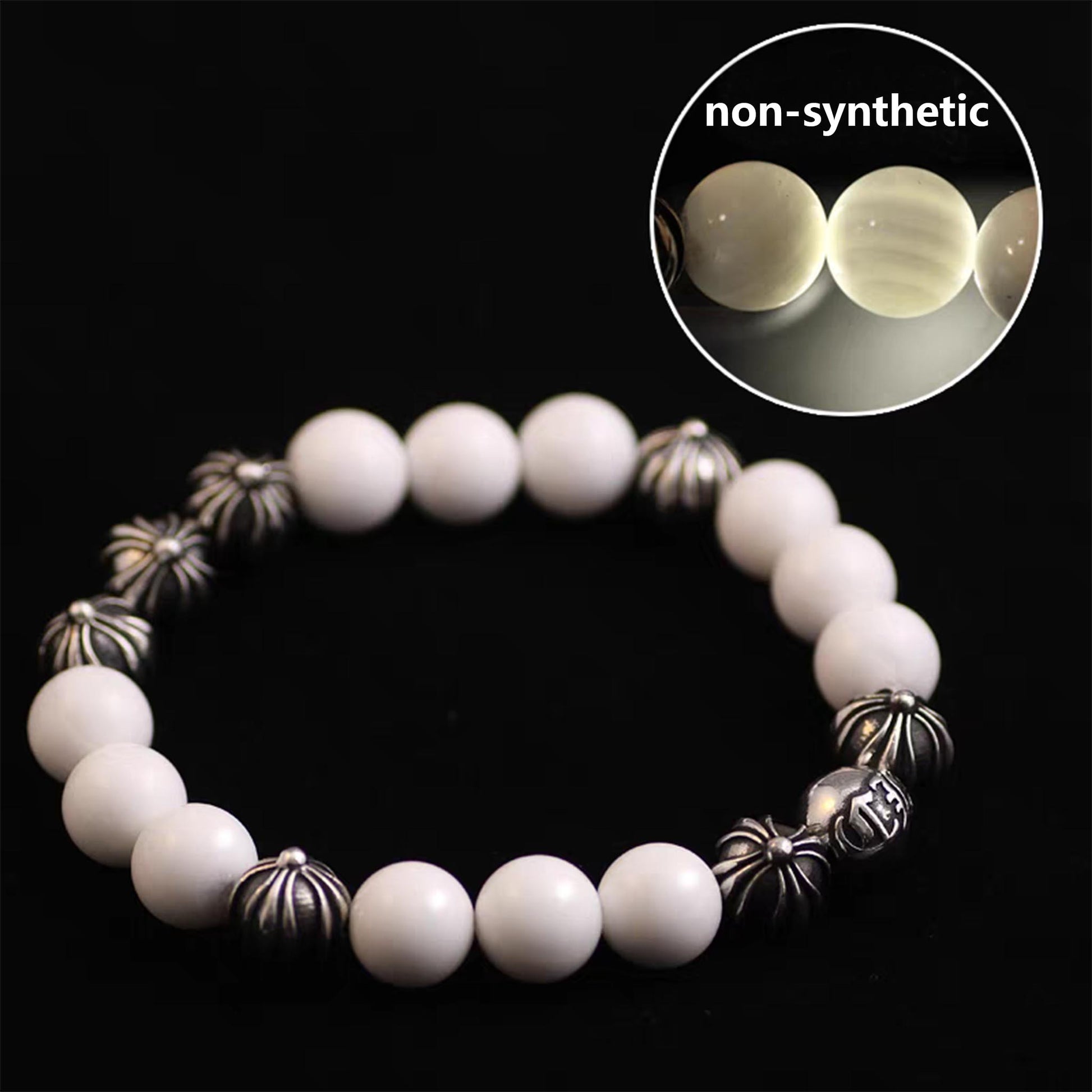 This classic white shell & silver beads bracelet has gorgeous shape and exquisite details, the texture is clear and quite different from the low-end products, please feel free to compare them.