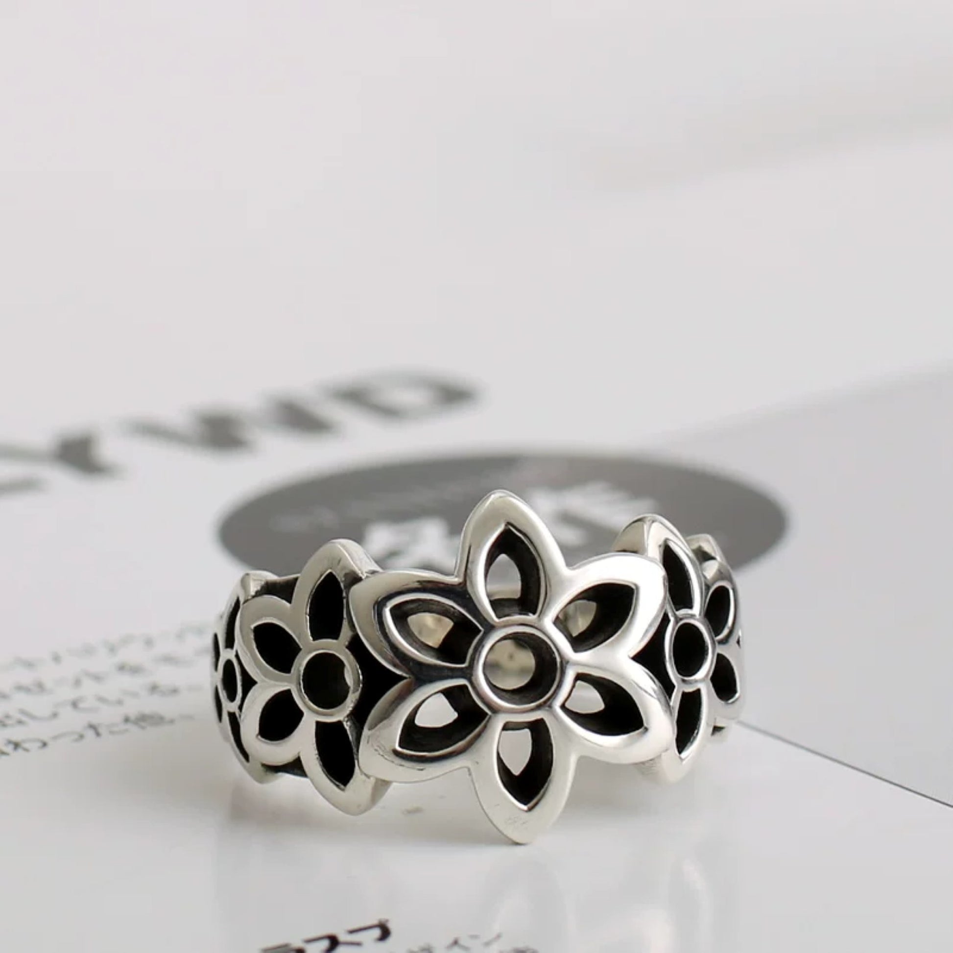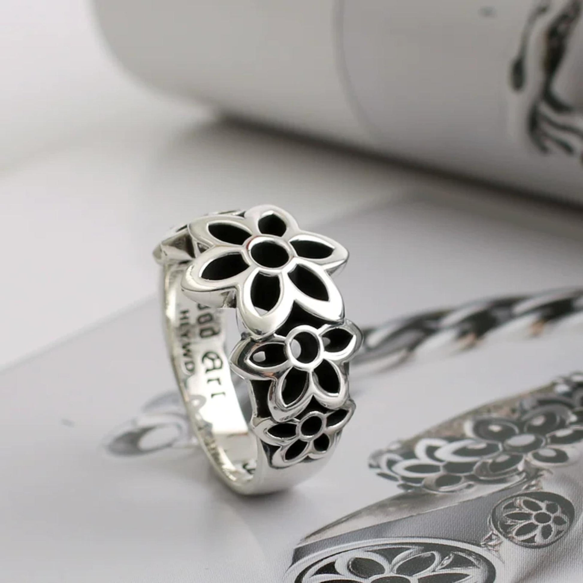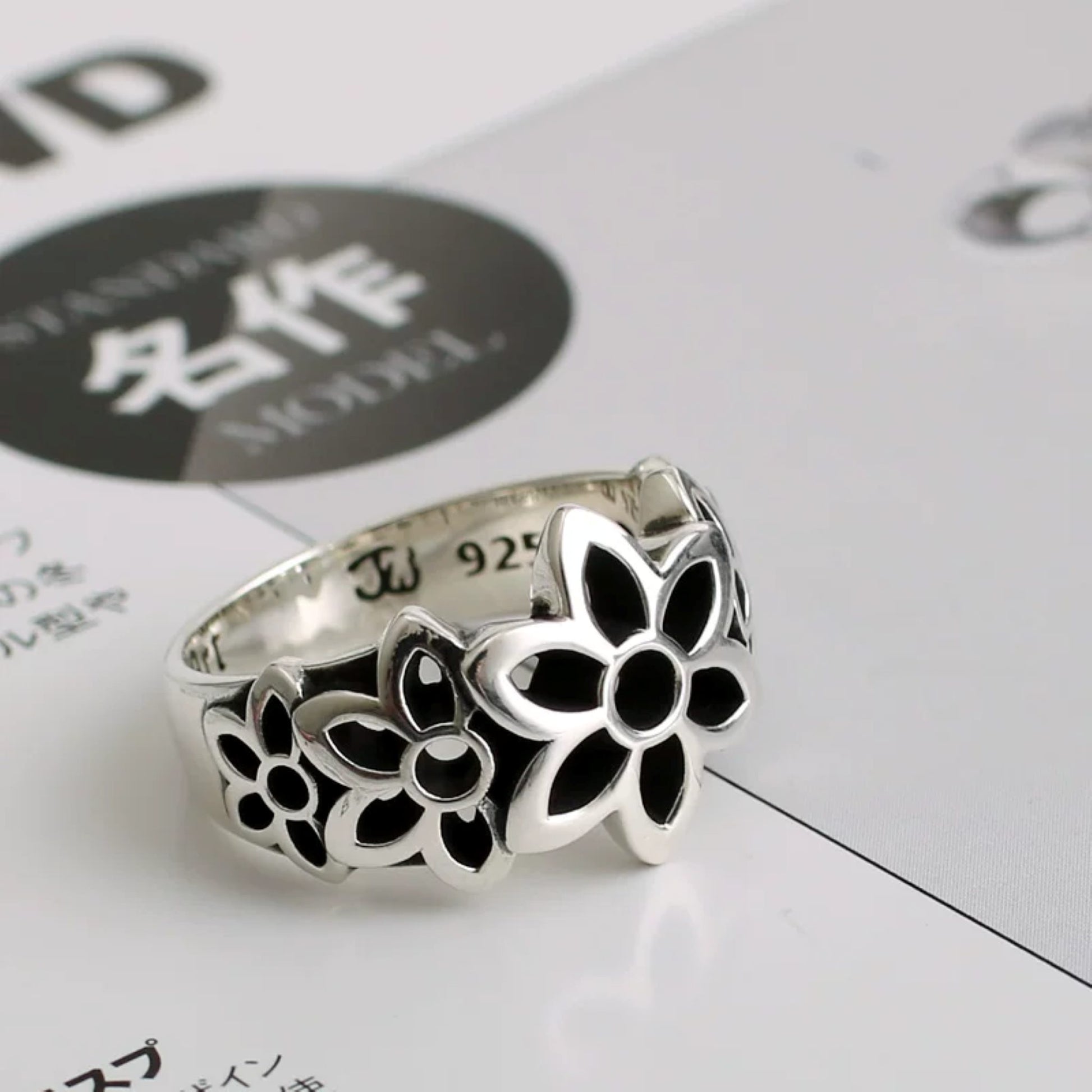 Good Art GA Cherry Blossoms Shape Ring, 925 Sterling Silver Punk Statement Ring for Couples