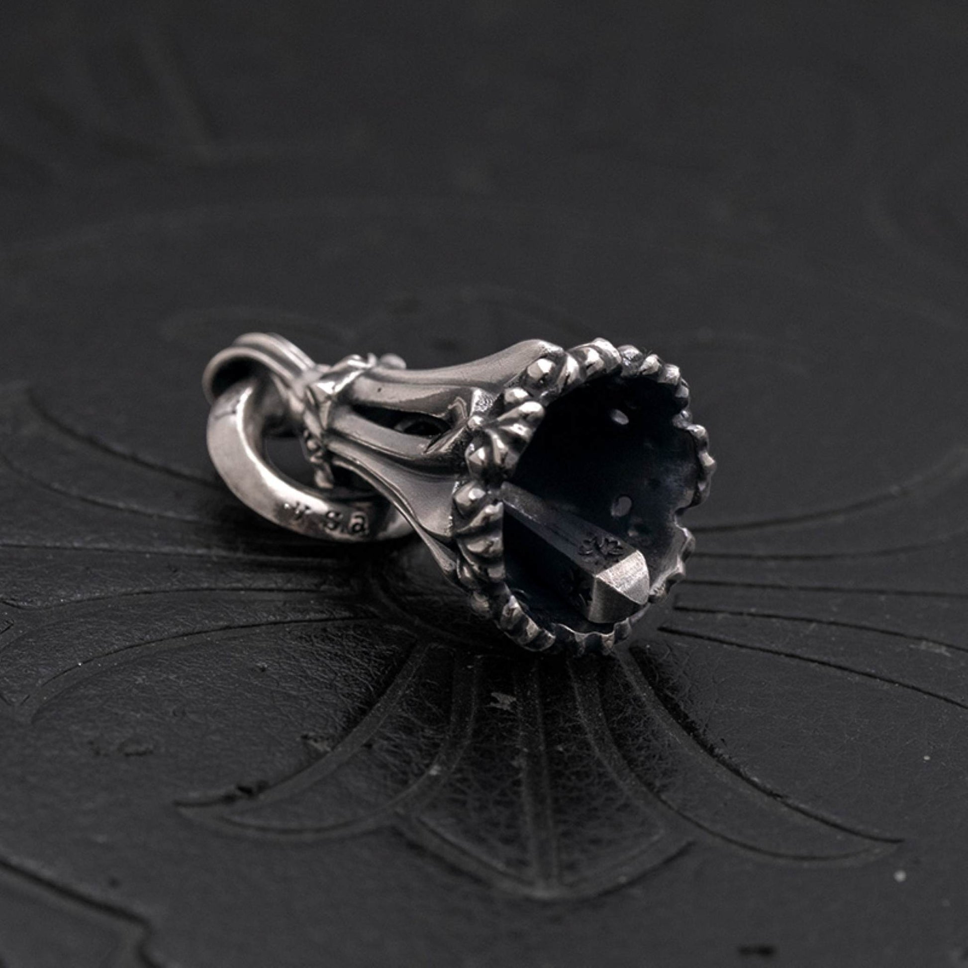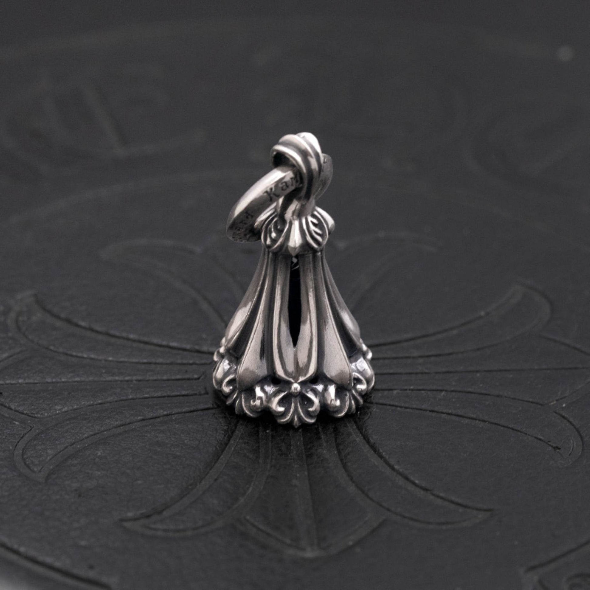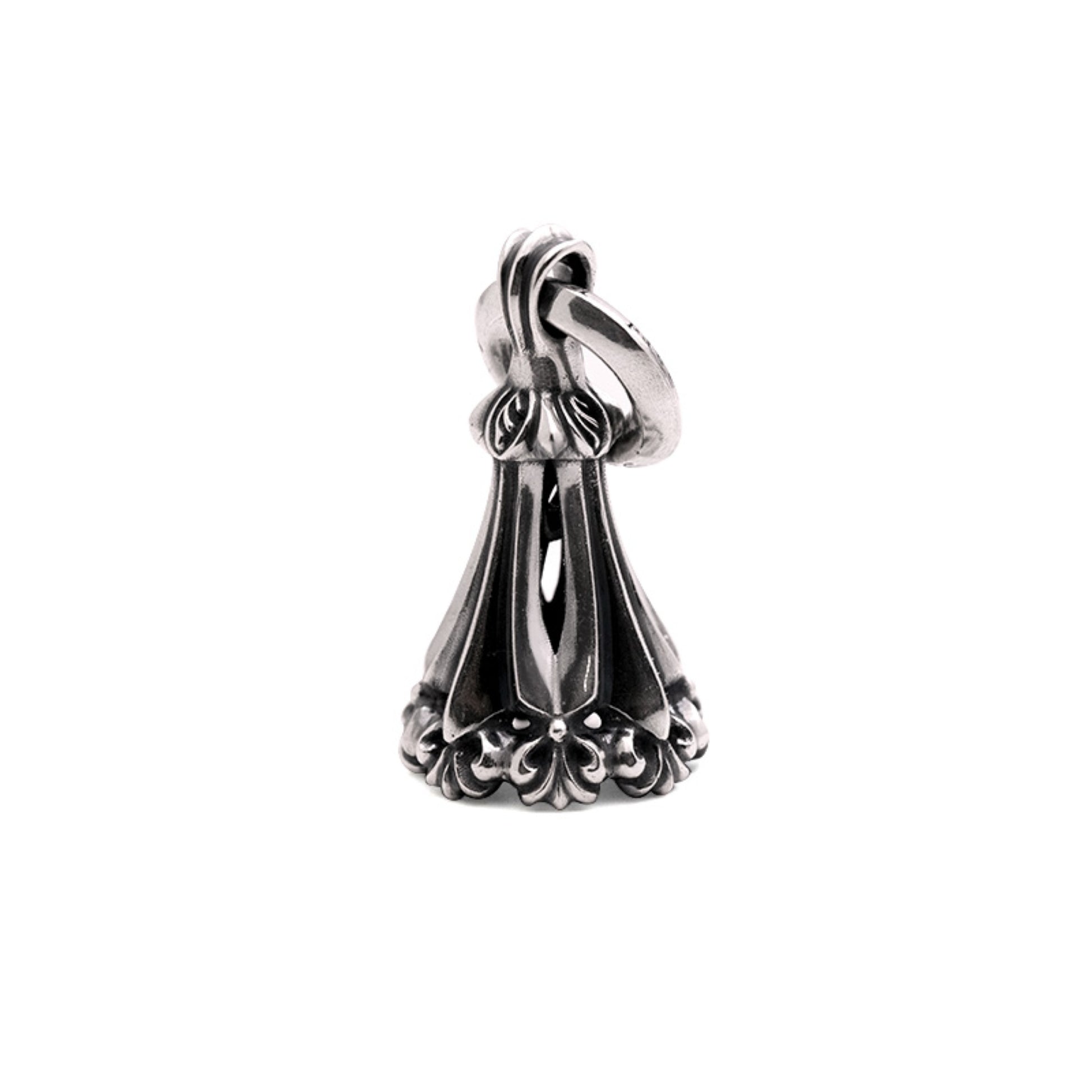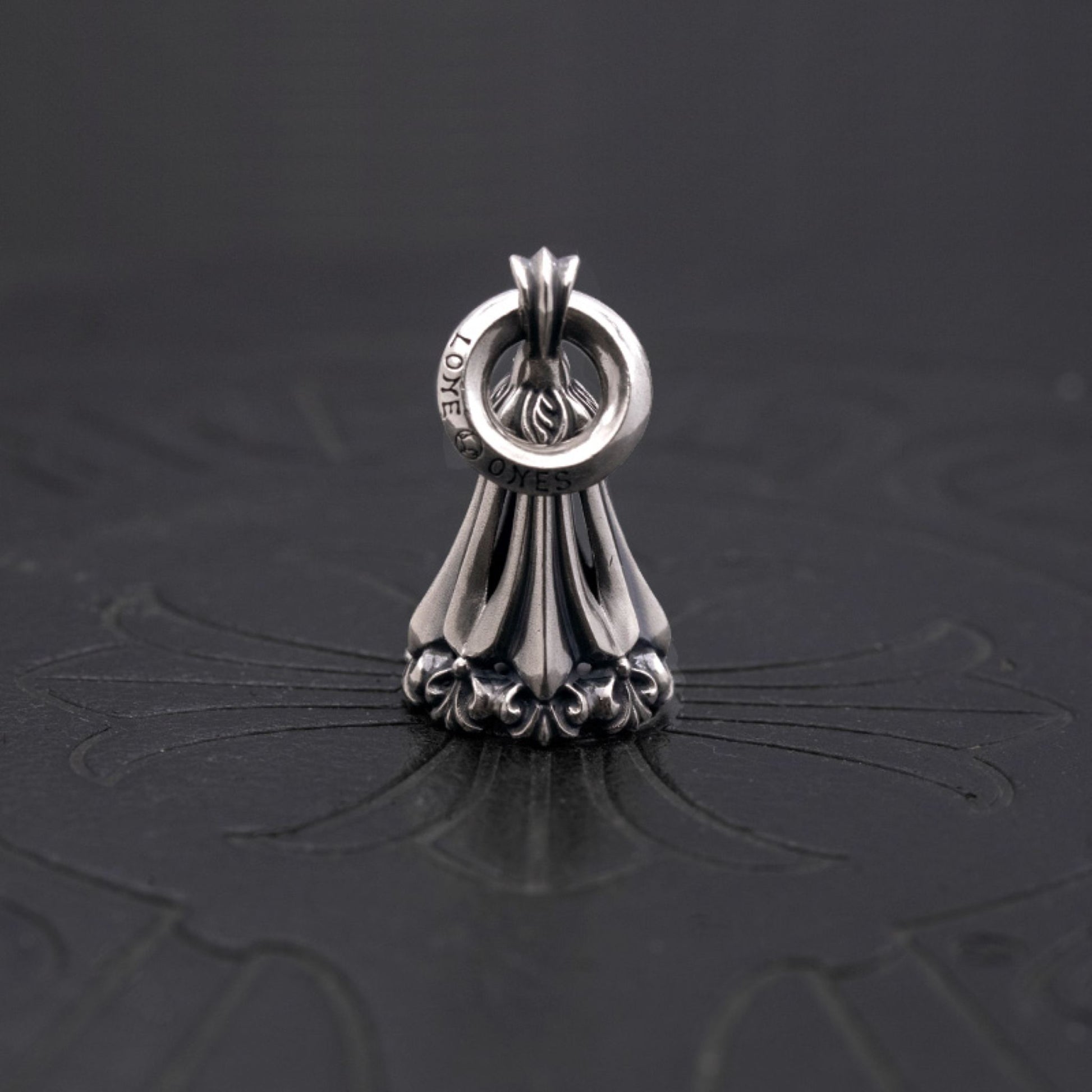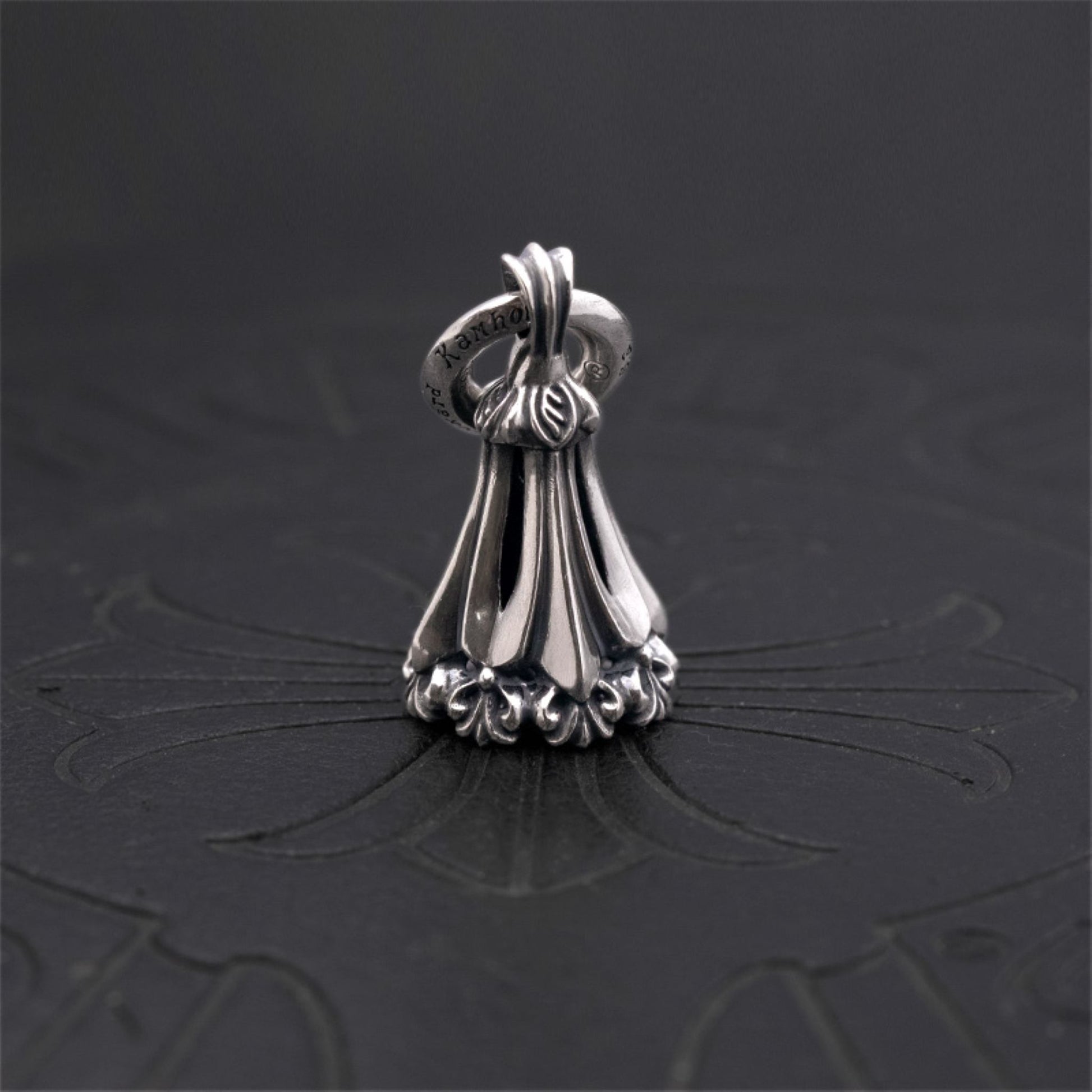 Lone Ones Chrome Bell Pendant, Hollow Cross Retro Punk Statement 925 Silver Bell Charm
