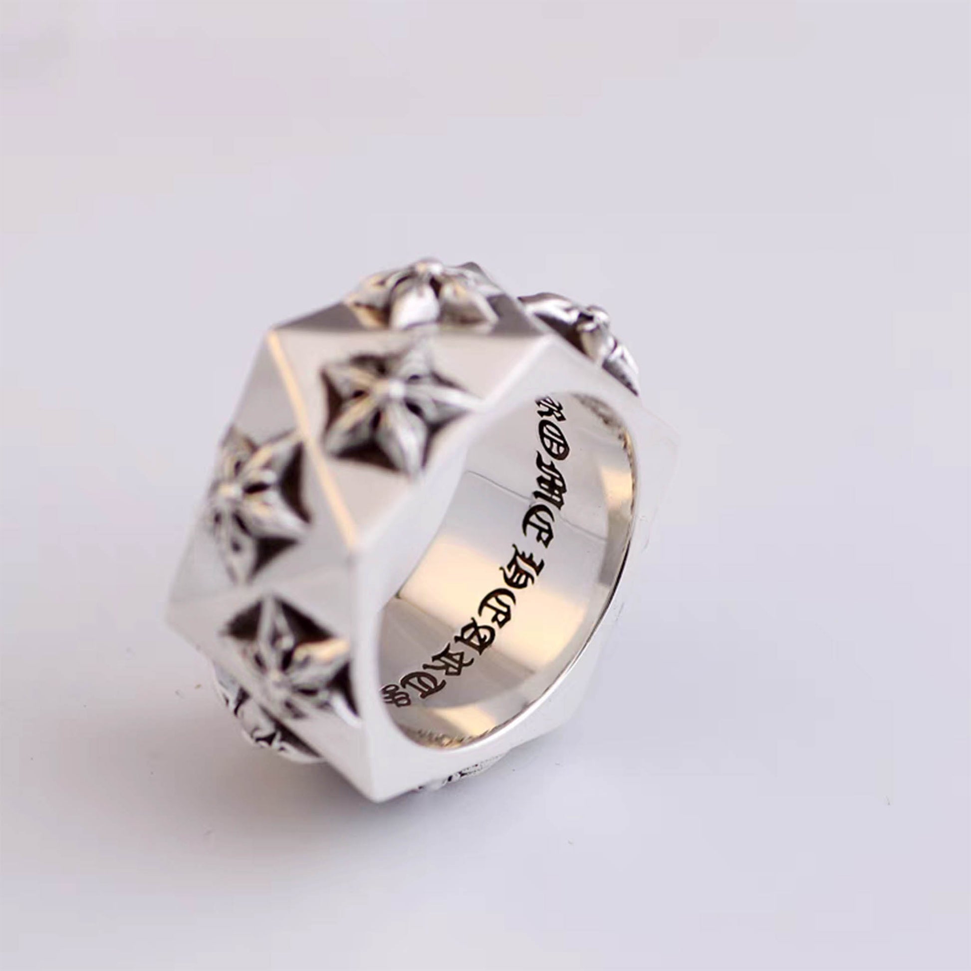 Sterling Silver Gothic Hexagon Star Pentagon Ring, Chrome Hearts Punk Statement Silver Rings