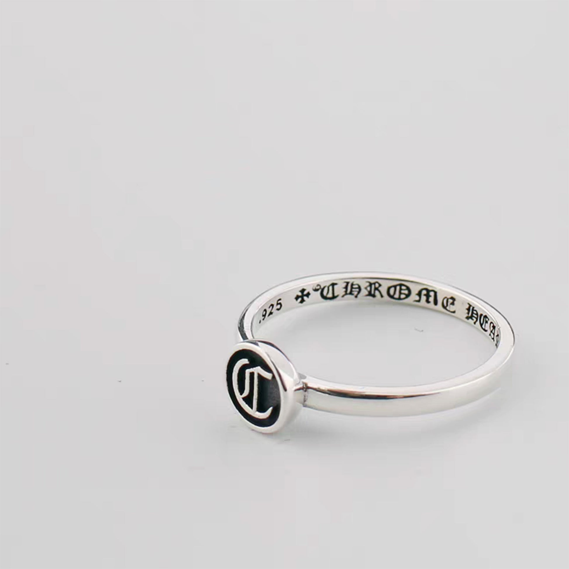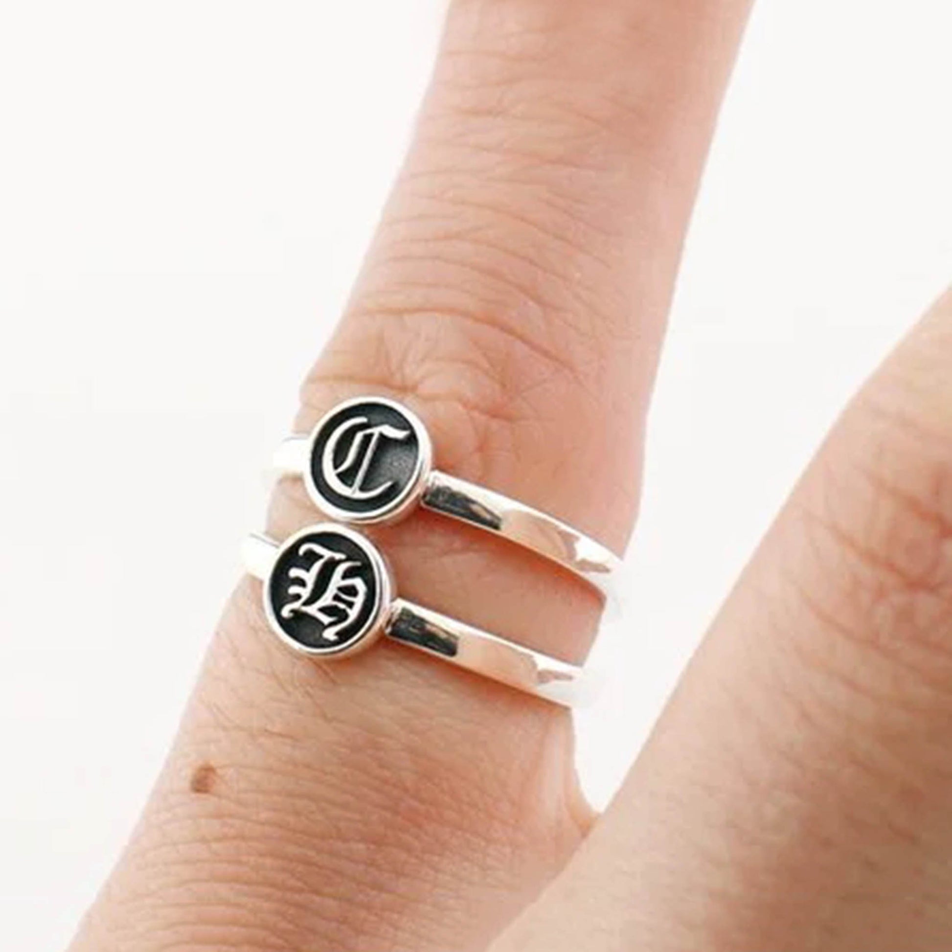 Sterling Silver Gothic Letter C & H Tail Ring, Chrome Hearts Punk Statement Silver Pinky Rings