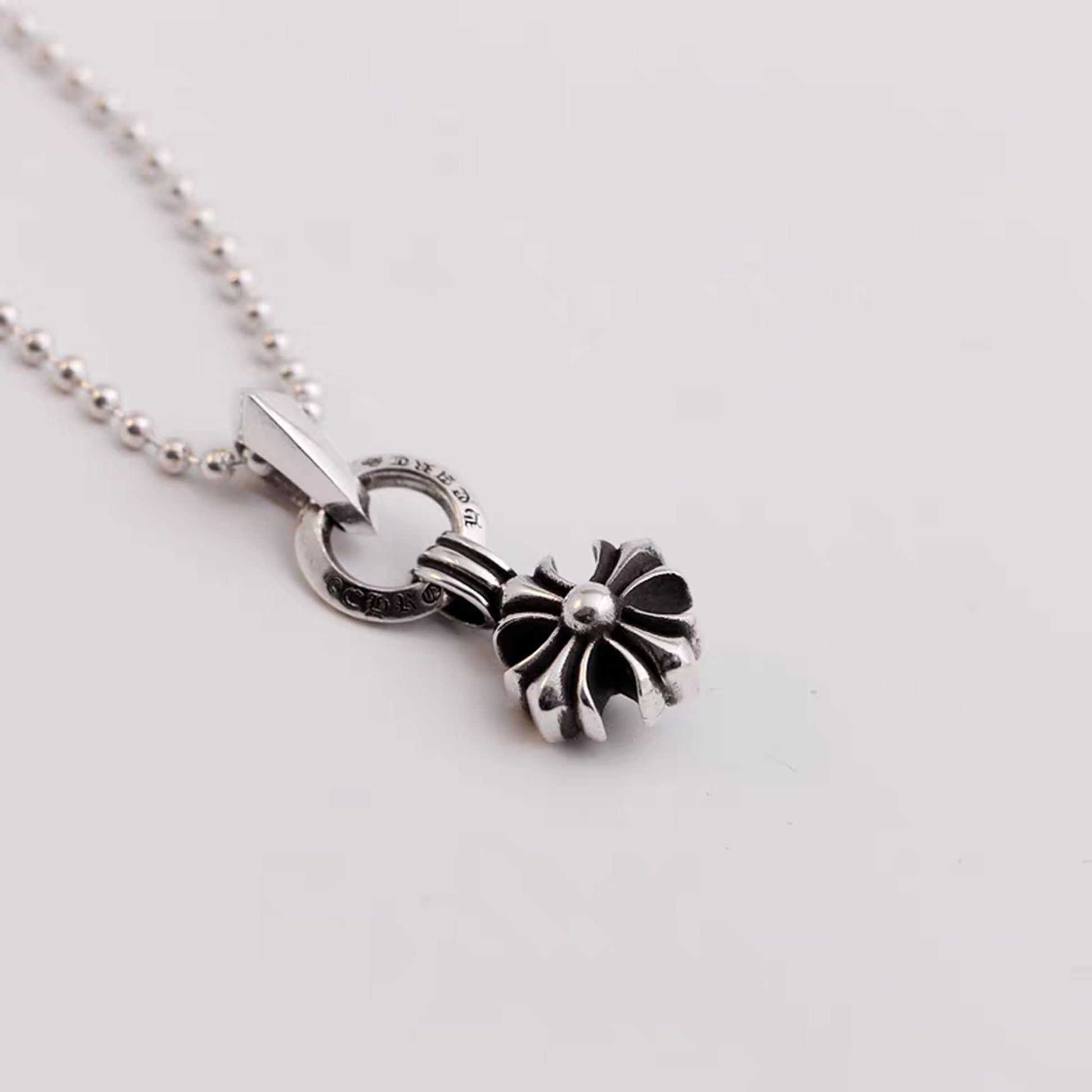 Sterling Silver Necklace Pendant, Silver Gothic Cross Flower Ball Chain Necklace Set